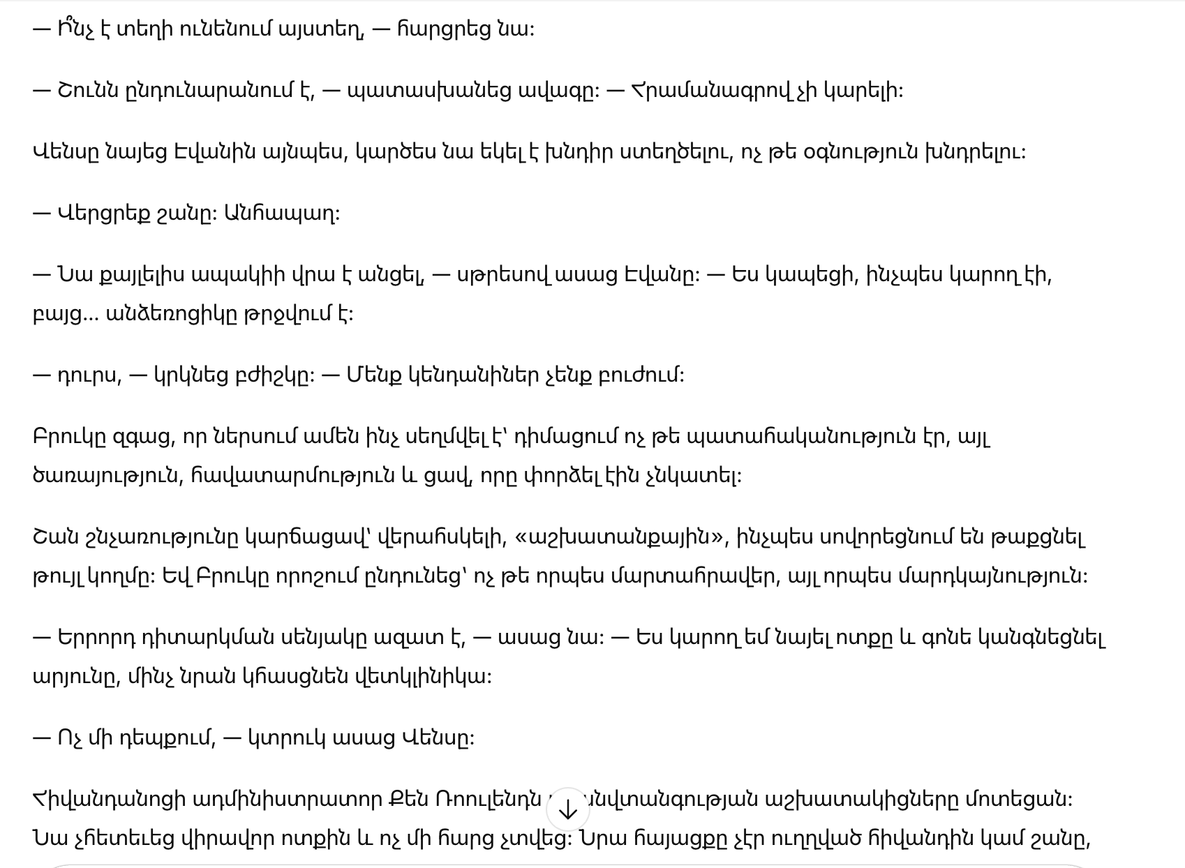 — Вы закончили, — холодно сказал он Брук. — Нарушаете протокол — подставляете учреждение.