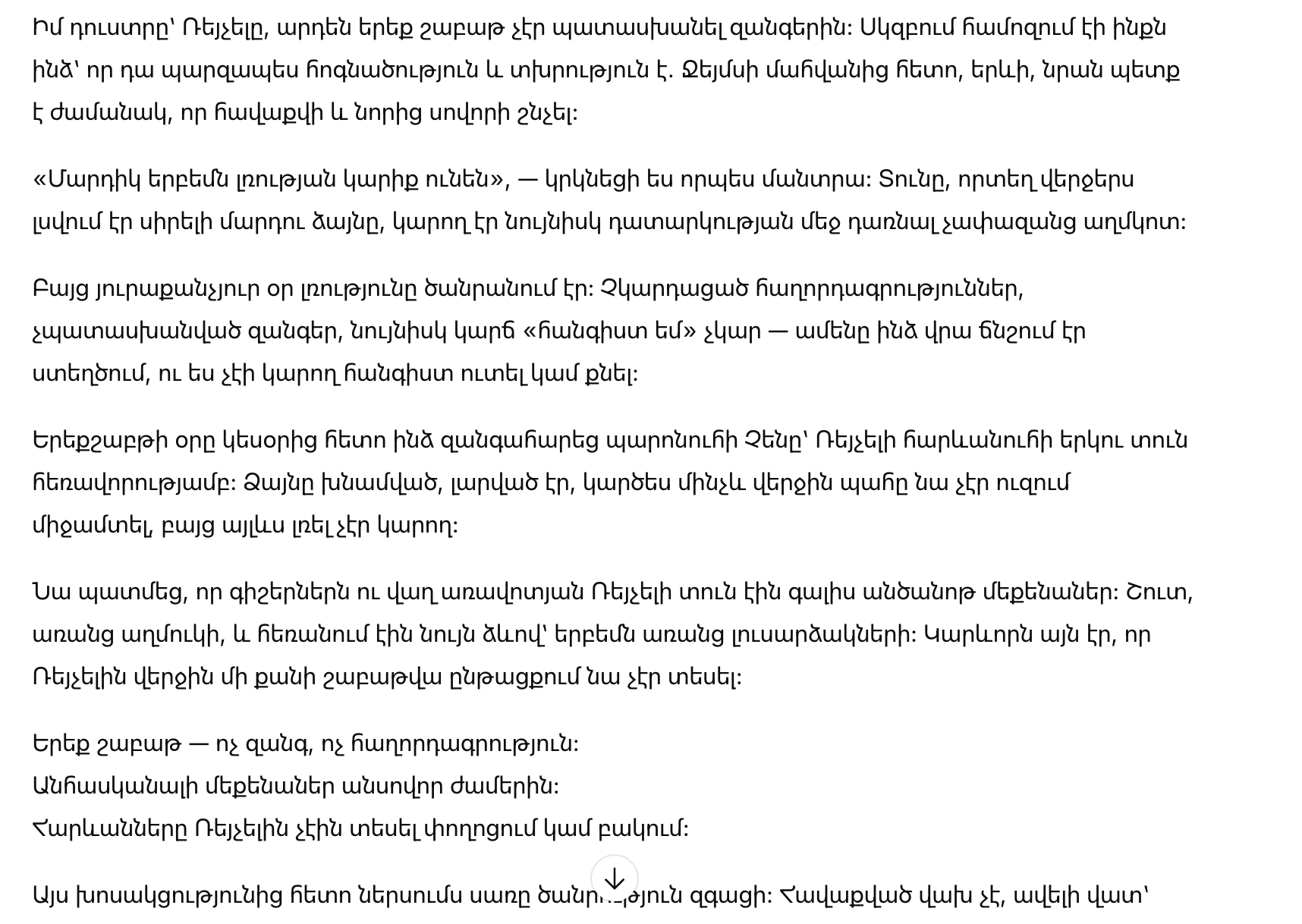 Но с каждым днем молчание становилось тяжелее. Непрочитанные сообщения, сброшенные вызовы, отсутствие даже короткого “всё нормально” — всё это давило на меня так, что я не могла спокойно ни есть, ни спать.