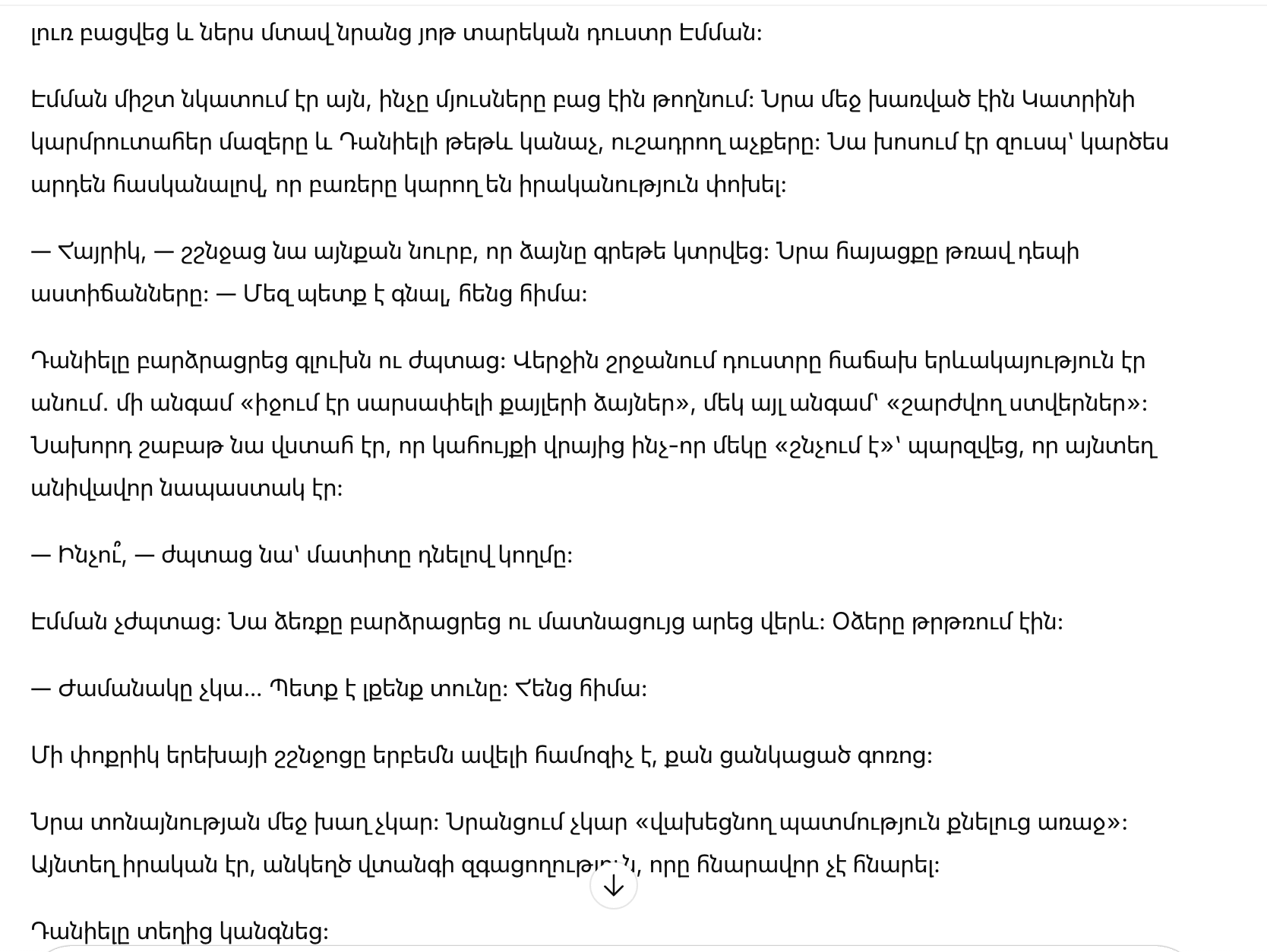 Эмма всегда замечала то, что другие пропускали. В ней смешались рыжеватые волосы Кэтрин и ярко-зелёные, внимательные глаза Дэниела. Она говорила аккуратно, будто заранее понимала: слова могут менять реальность.