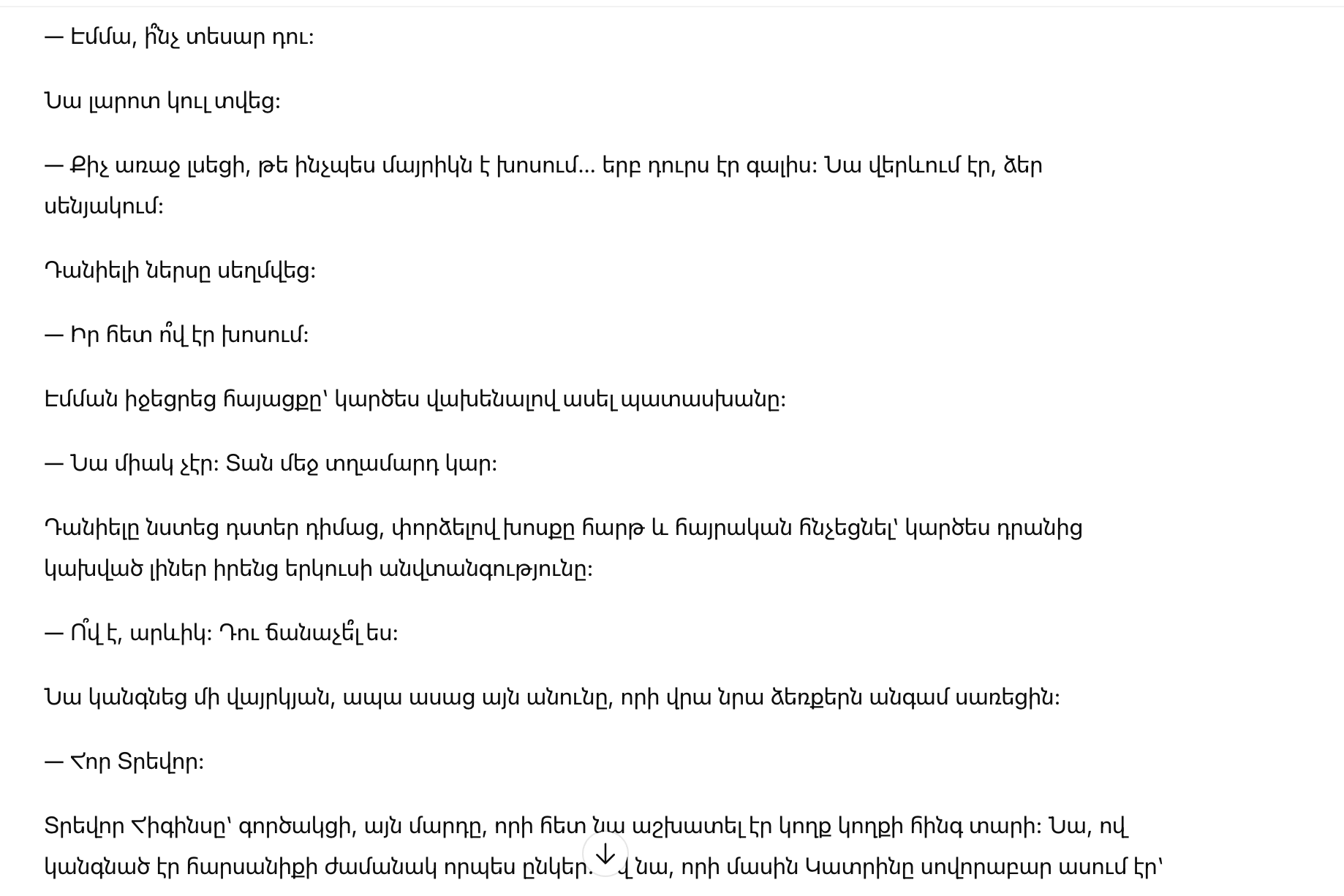 — Папа, — прошептала она так тихо, что голос едва не сорвался. Её взгляд метнулся к лестнице. — Нам нужно уйти. Прямо сейчас.