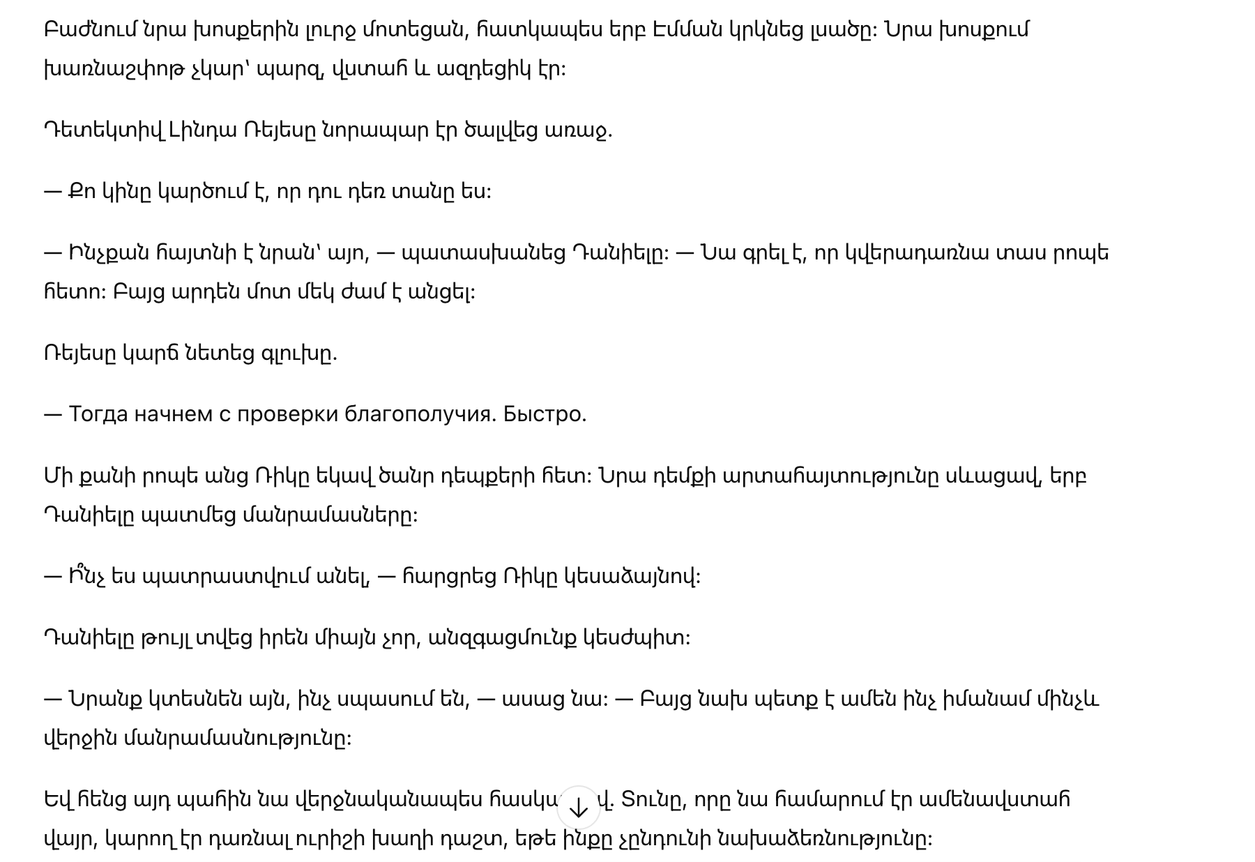 — Думаю, моя жена и мой партнёр собираются провернуть кое-что сегодня. Мне нужны доказательства, — ответил Дэниел.