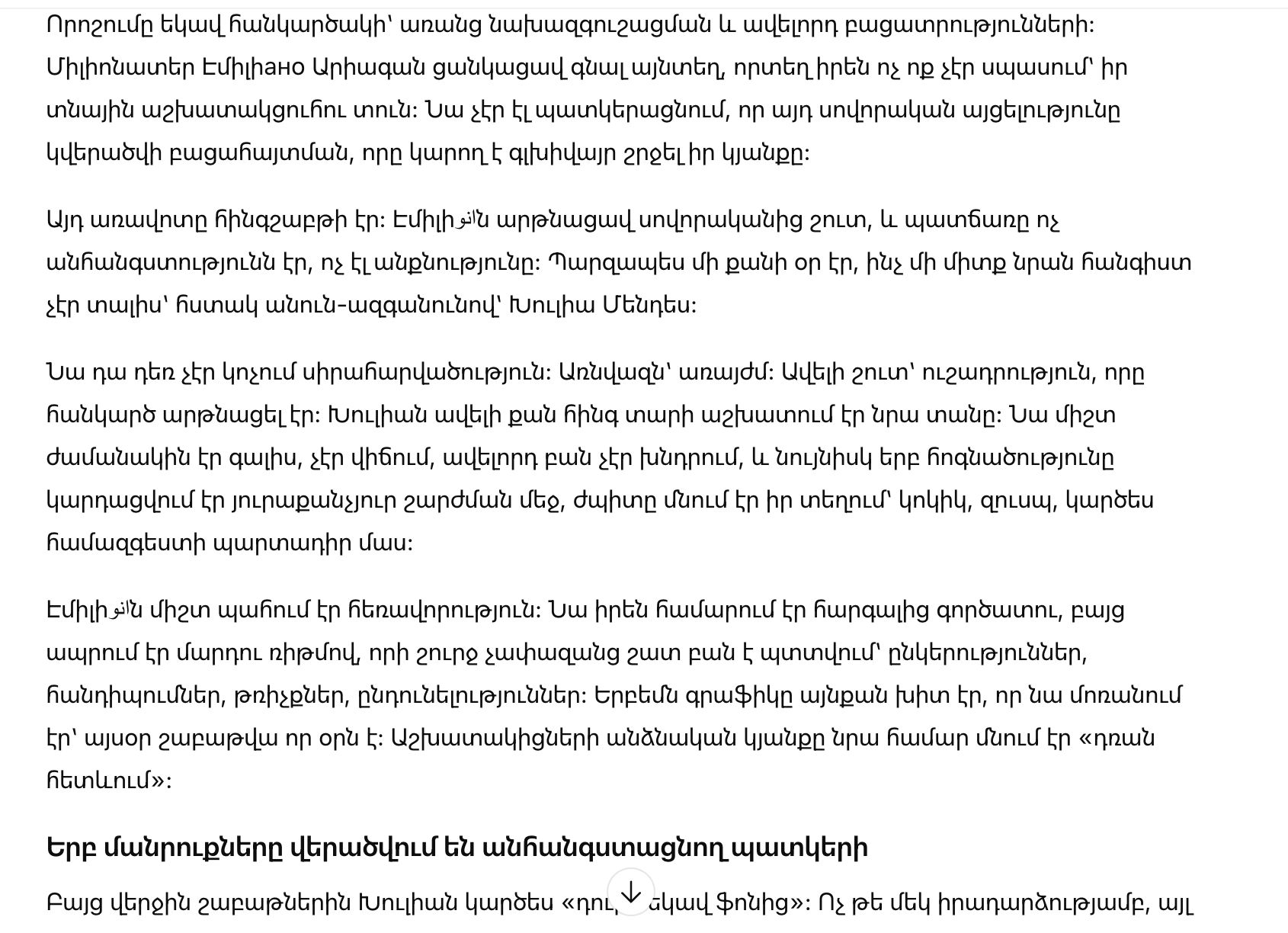 Он мог бы просто выдать премию, отправить деньги или поручить помощнику «разобраться». Но впервые ему захотелось не дистанционного жеста, а человеческого участия — увидеть Хулию, понять, в каких условиях она живёт, и почему в её взгляде так часто появляется усталость, не похожая на обычную.