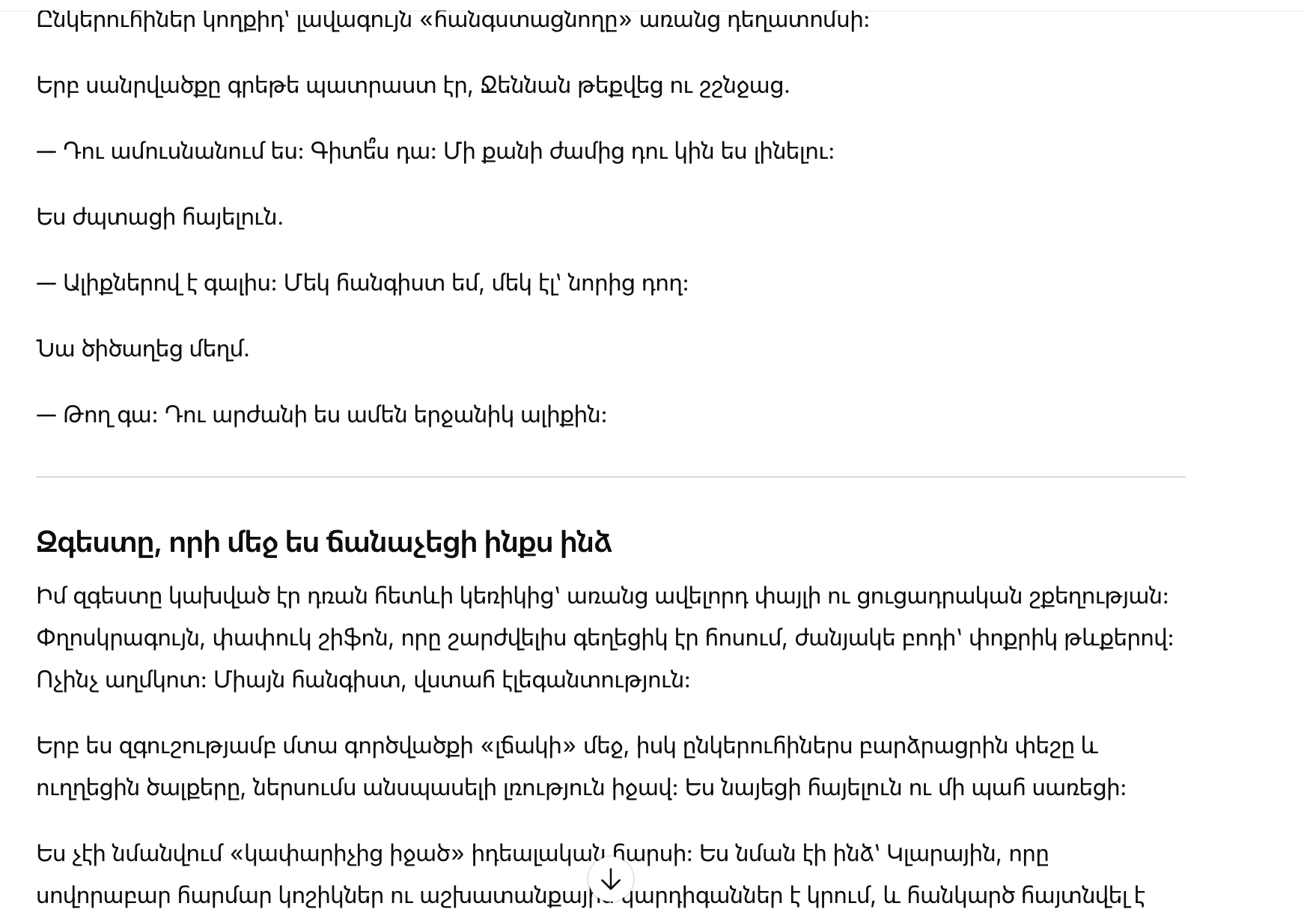Потом она усмехнулась — коротко, колко: «Ну да. Вот что бывает, когда выходишь за никого».