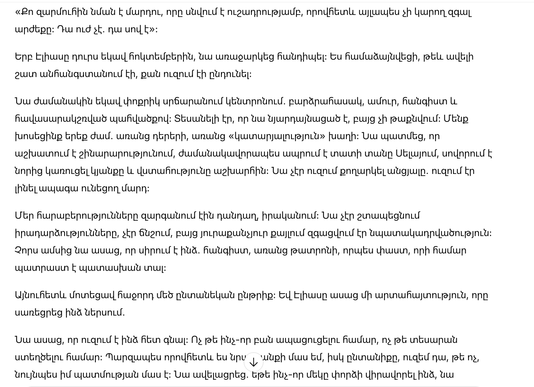 Наши отношения развивались медленно, по-настоящему. Он не торопил события и не давил, но в каждом шаге чувствовалась намеренность. Через четыре месяца он сказал, что любит меня — спокойно, без театра, как факт, за который готов отвечать.