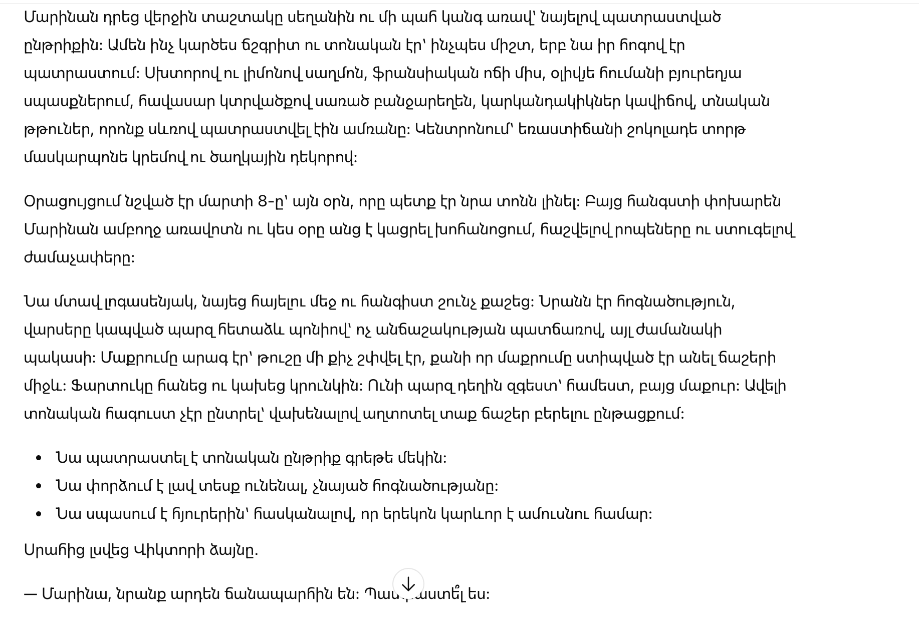 Итог: Марина сделала всё, чтобы праздник удался, но одно неосторожное (и несправедливое) замечание мужа показало ей главное — пора перестать оправдываться и начать беречь себя. Даже самые идеальные блюда не заменят тёплых слов и поддержки.