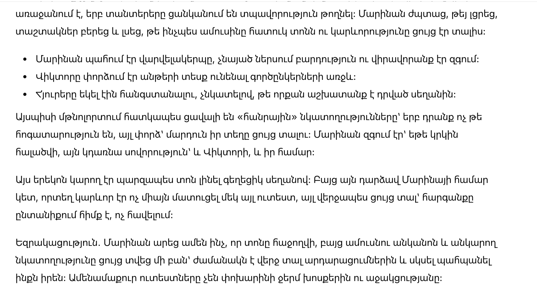И именно в такой обстановке особенно болезненно звучат замечания «на публику» — когда это не забота, а попытка поставить человека на место. Марина чувствовала: если она снова проглотит унижение, оно станет привычным — и для Виктора, и для неё самой.