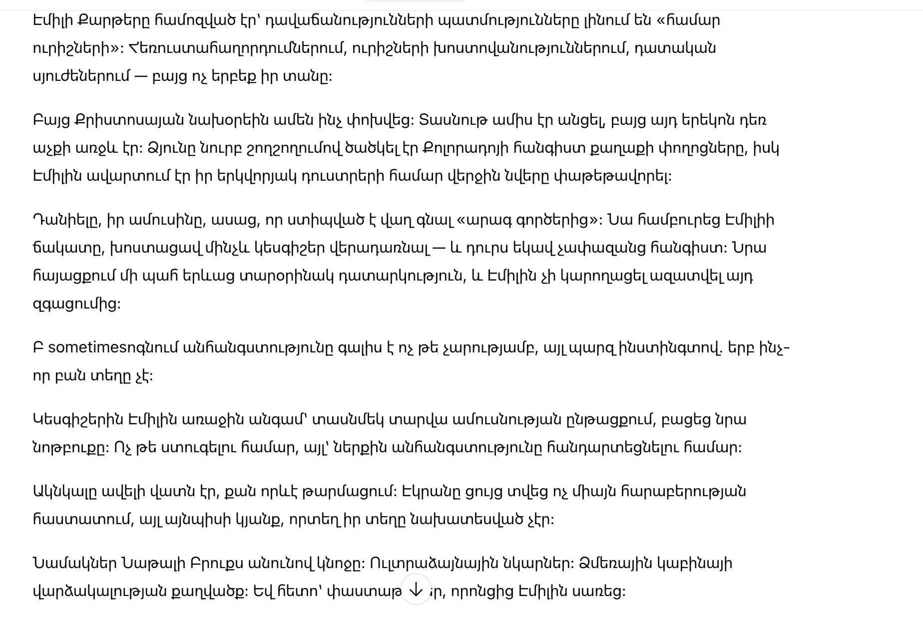 Ночью Эмили плакала рядом со спящими дочерьми и ясно осознала: человек, которого она любила и которому доверяла, может быть для неё опасен — не обязательно физически, но точно в том смысле, что способен разрушить её жизнь без колебаний.