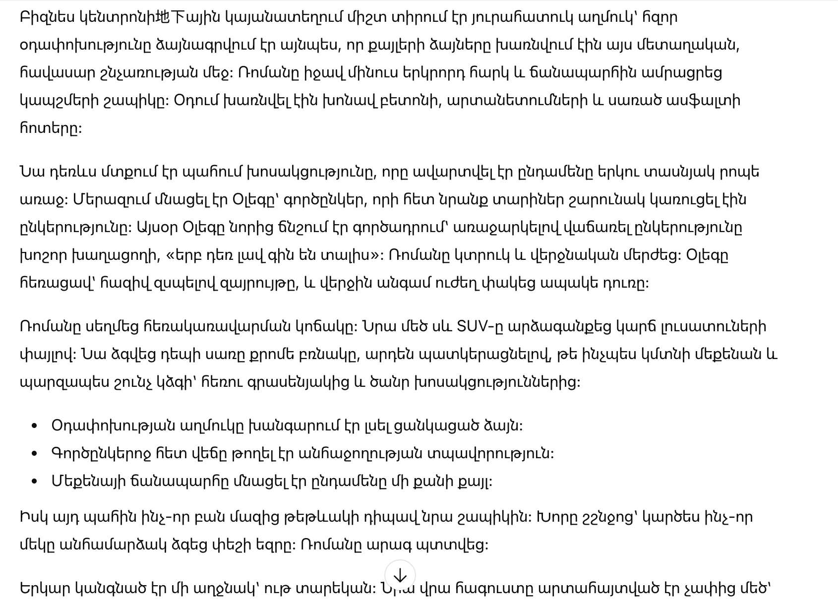 Роман нажал кнопку на брелоке. Его массивный черный внедорожник ответил коротким миганием фар. Он потянулся к холодной хромированной ручке, уже представляя, как сядет за руль и просто выдохнет — подальше от офиса и тяжелых разговоров.