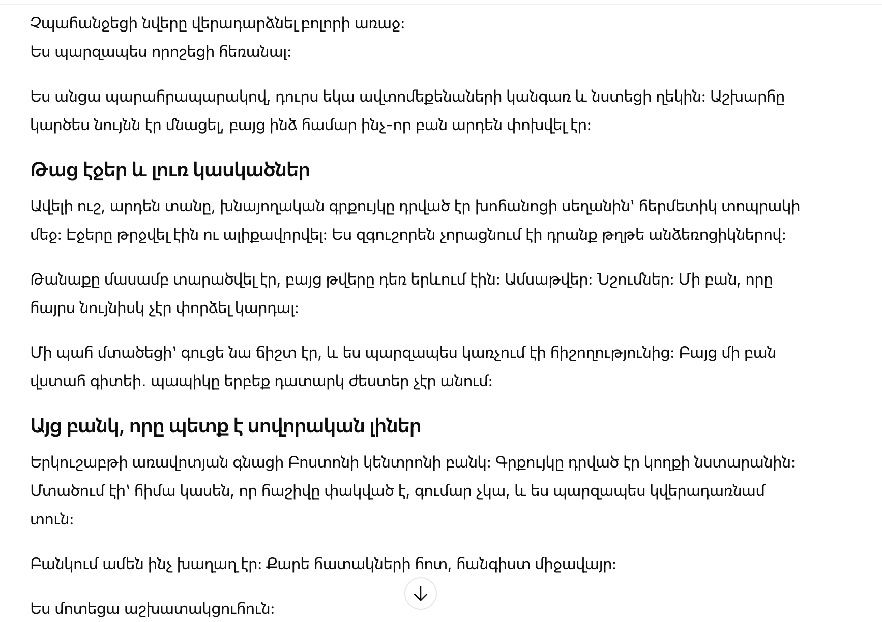 Позже, уже дома, сберкнижка лежала на кухонной столешнице в герметичном пакете. Страницы размокли и пошли волнами. Я аккуратно накрыла её бумажными полотенцами — как накрывают вещь, которую всё ещё хочется спасти. Чернила расплылись, но не исчезли полностью: различались цифры, даты, отметки. Что-то, что мой отец даже не попытался прочитать, прежде чем высмеять.