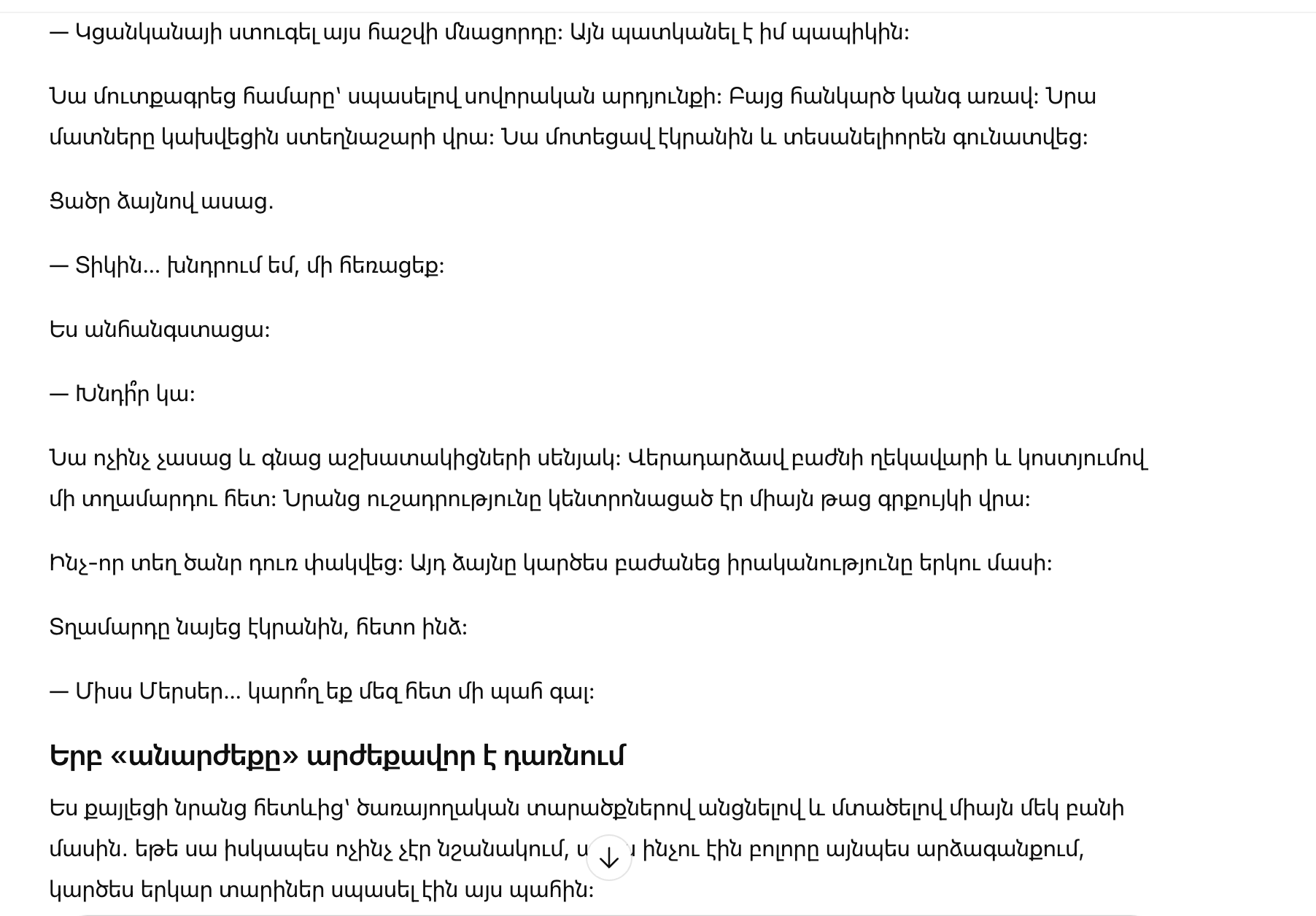 Я пошла за ними — мимо матовых перегородок, мимо кодового замка, мимо таблички «Только для персонала», которая внезапно стала похожа на границу. И всё это время в голове крутился один вопрос: если эта вещь действительно ничего не стоит — почему здесь, в банке, ведут себя так, будто ждали её много лет?