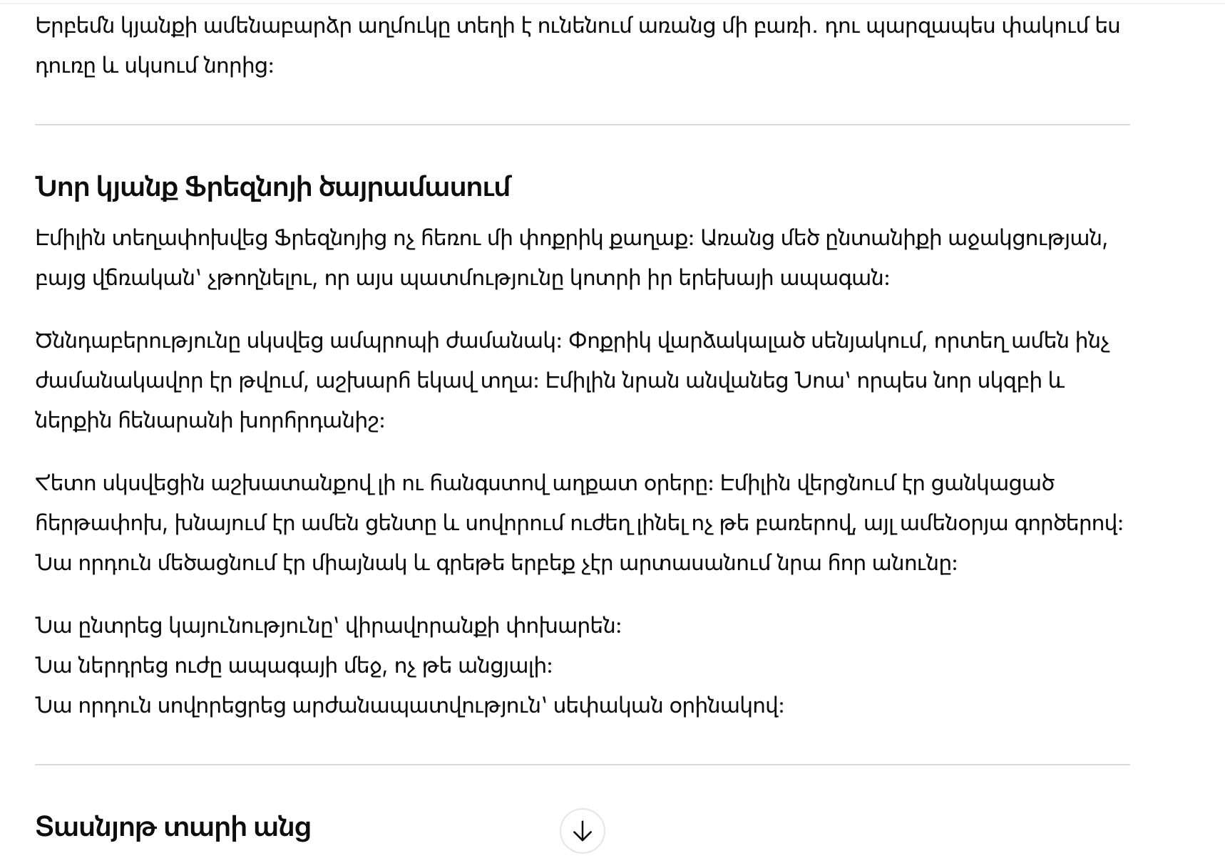 Дальше было много работы и мало отдыха. Эмили бралась за любые смены, экономила каждую мелочь и училась быть сильной не на словах, а в ежедневных делах. Она растила сына одна и почти никогда не произносила имя его отца.