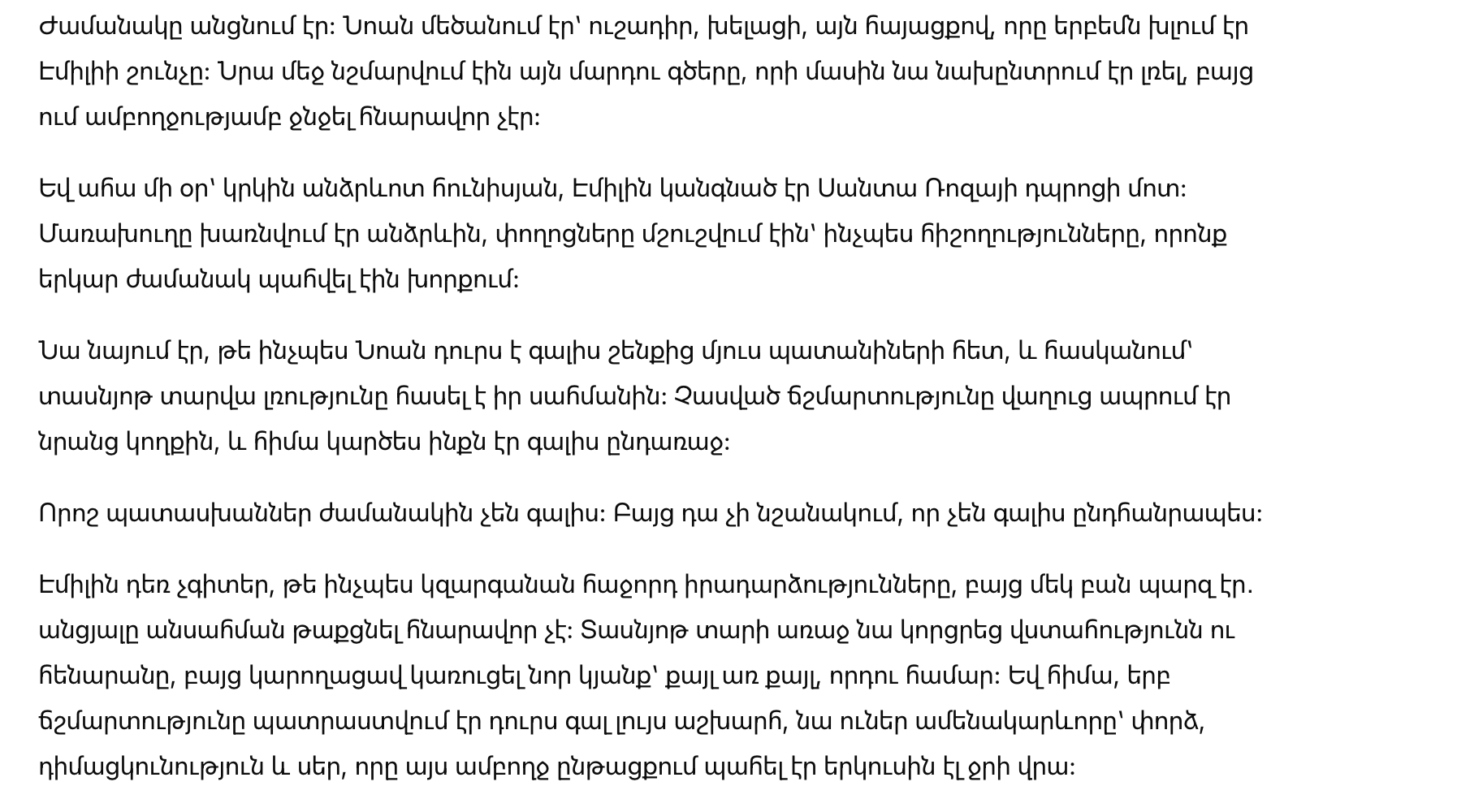 И вот однажды — снова дождливый июньский день — Эмили стояла у школы в Санта‑Розе. Туман смешивался с дождём, улицы расплывались, как воспоминания, которые долго прятали в дальний ящик.