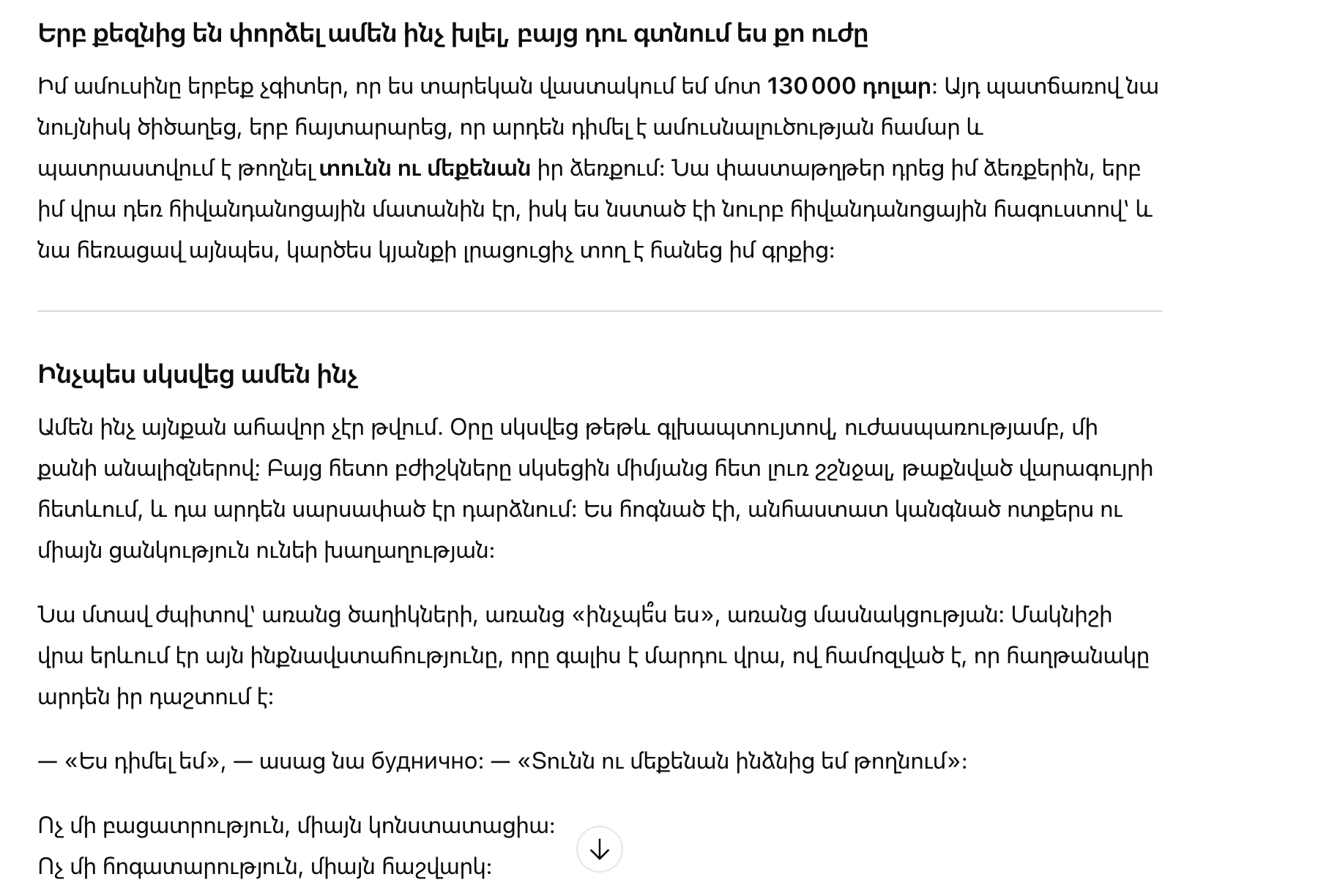 Он наклонился ближе и понизил голос: «Ты не потянешь суды. Просто подпиши».