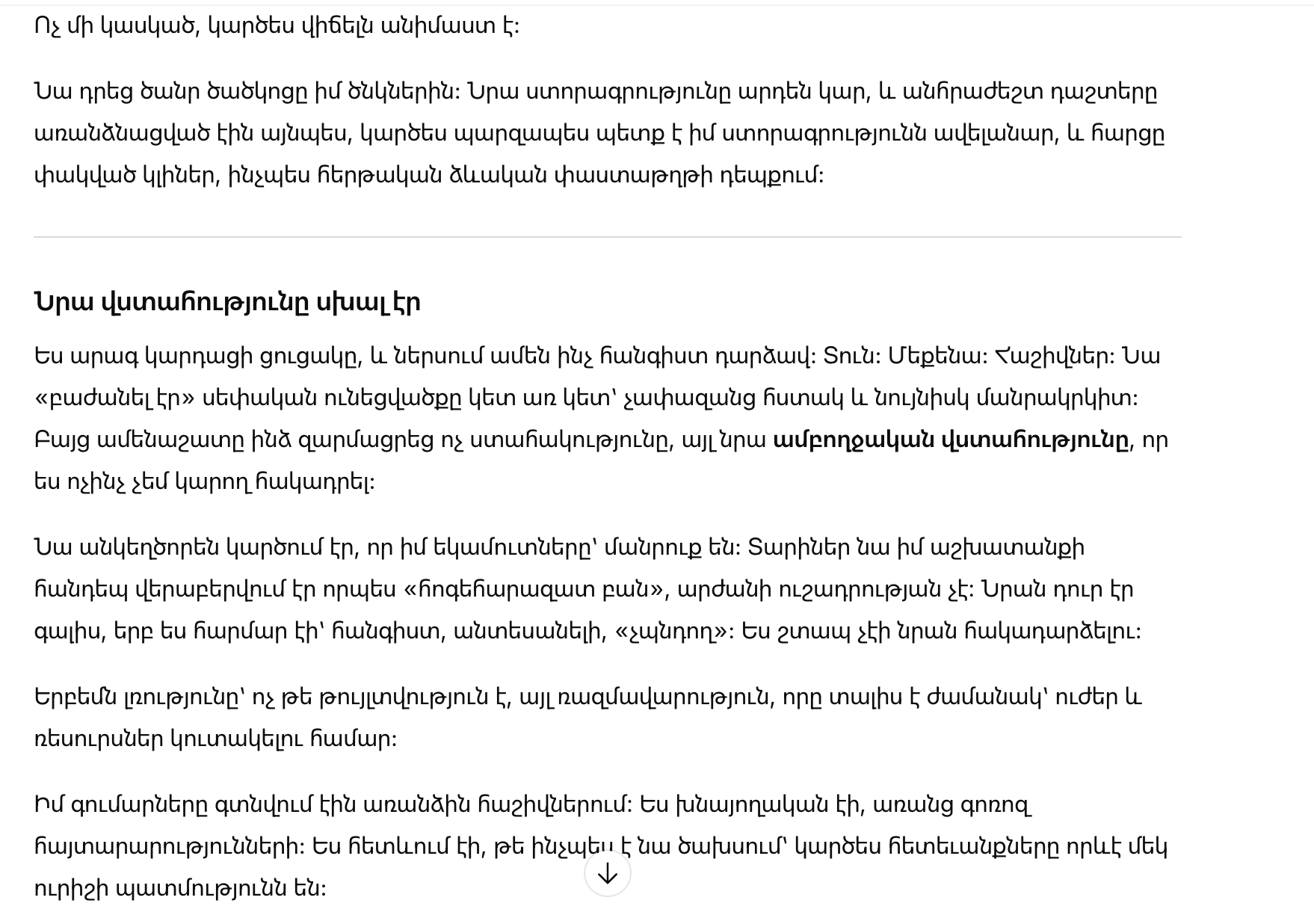 Он ведь искренне считал, что мои доходы — мелочь. Годами он относился к моей работе как к «чему-то для души», не стоящему внимания. Ему нравилось, когда я была удобной: спокойной, незаметной, «не претендующей». Я не спешила его разубеждать.
