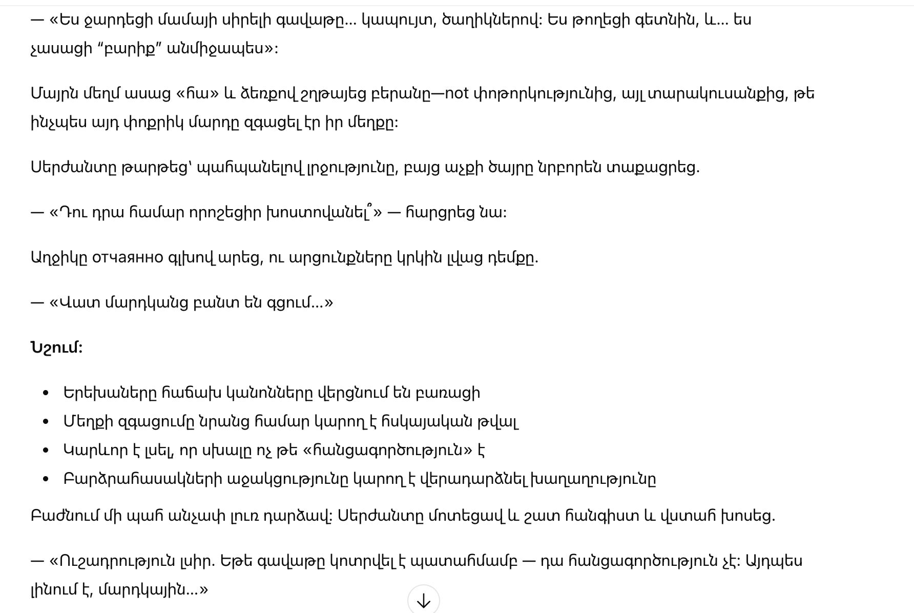 В конце концов, эта история не о проступке, а о том, как важно вовремя услышать ребёнка, объяснить ему разницу между ошибкой и бедой и показать: правда и извинение — уже шаг к добру. А значит, иногда одного спокойного разговора достаточно, чтобы вернуть в дом сон, аппетит и улыбку.
