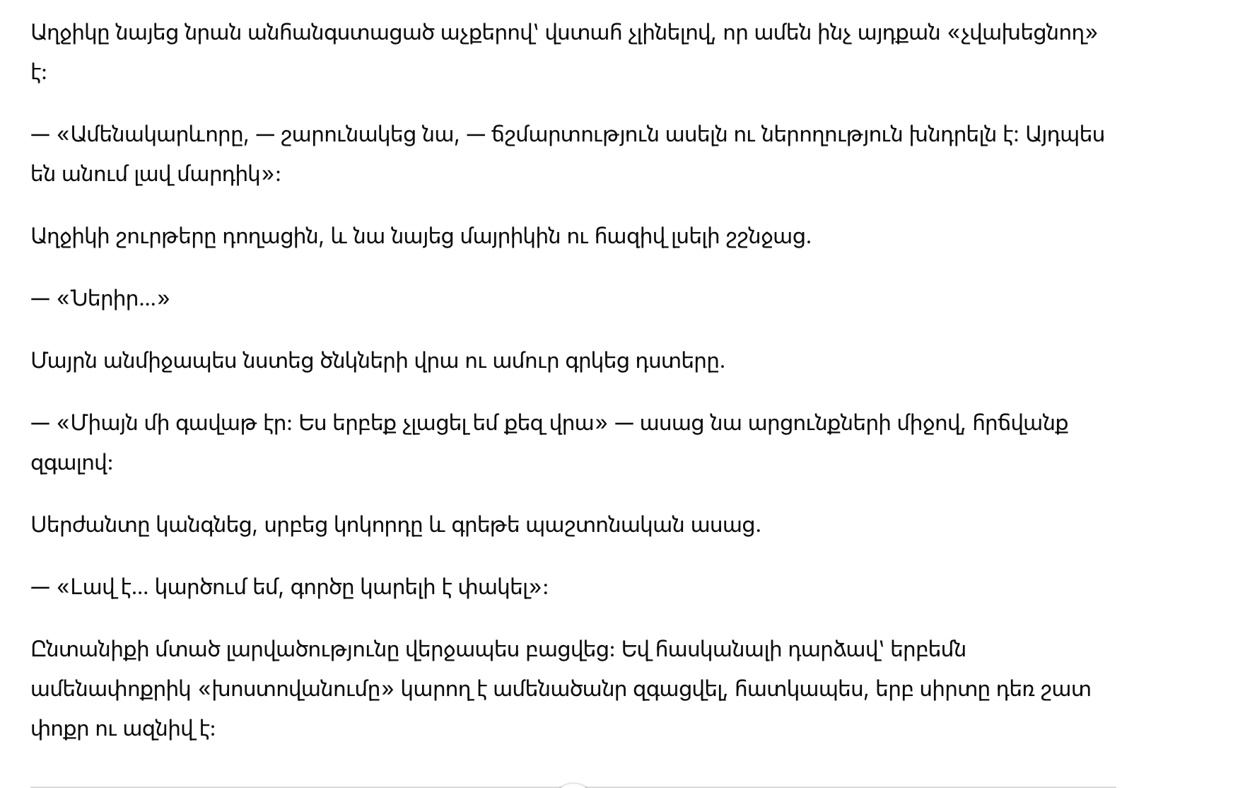 «Послушай. Если кружка разбилась случайно — это не преступление. Такое бывает. Это просто… по-человечески».