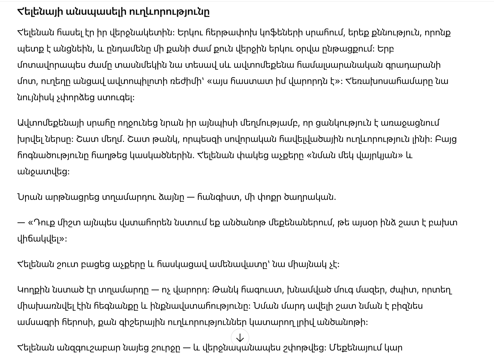 Теперь, когда сон окончательно отпустил, Хелена заметила детали: дорогая кожа сидений, гладкие деревянные вставки, современная панель управления. Всё выглядело не просто богато — а чрезмерно, почти демонстративно.
