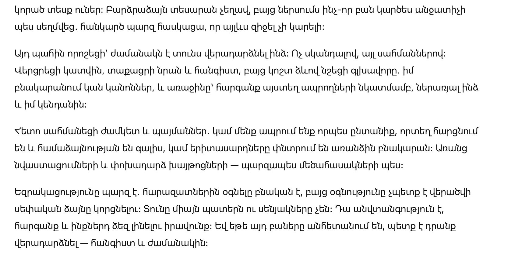 Вывод прост: помогать близким — нормально, но помощь не должна превращаться в потерю собственного голоса. Дом — это не только стены и комнаты. Это чувство безопасности, уважение и право быть собой. И если эти вещи исчезают, их нужно возвращать — спокойно и вовремя.