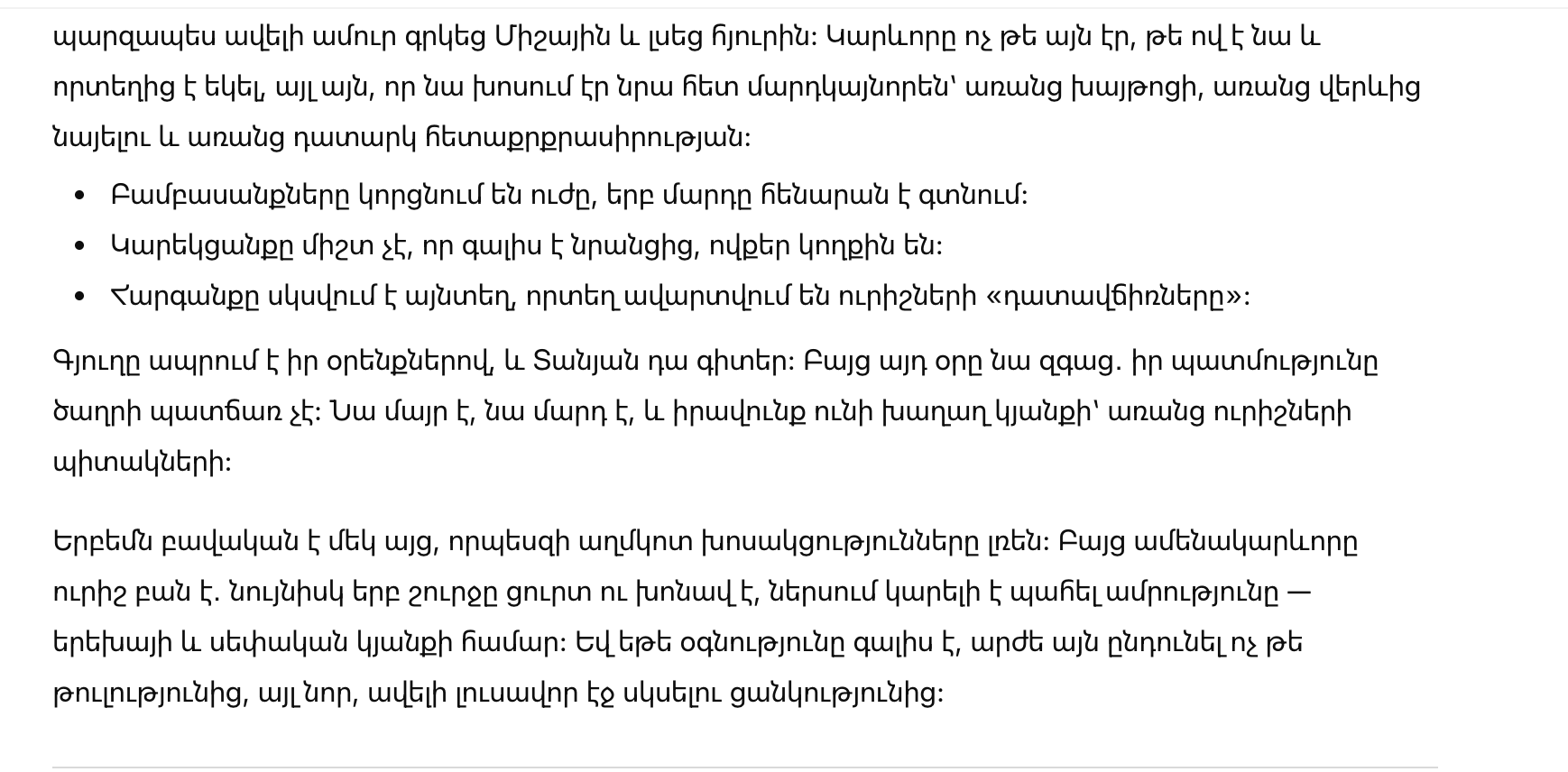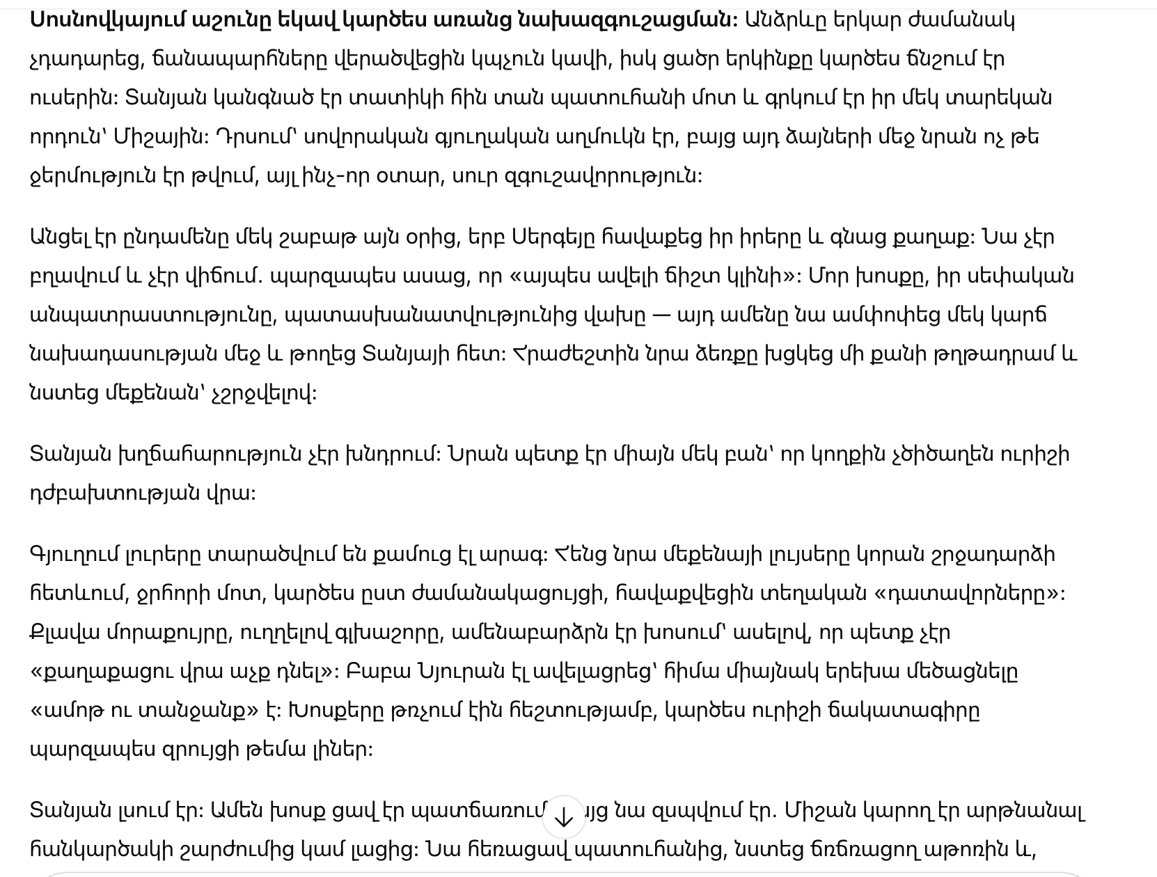 Таня не бросилась оправдываться и не стала объяснять свою жизнь каждому зрителю этого немого спектакля. Она просто крепче прижала Мишу и выслушала гостя. Важно было не то, кто он и откуда, а то, что он разговаривал с ней по-человечески — без уколов, без снисхождения и без любопытства.