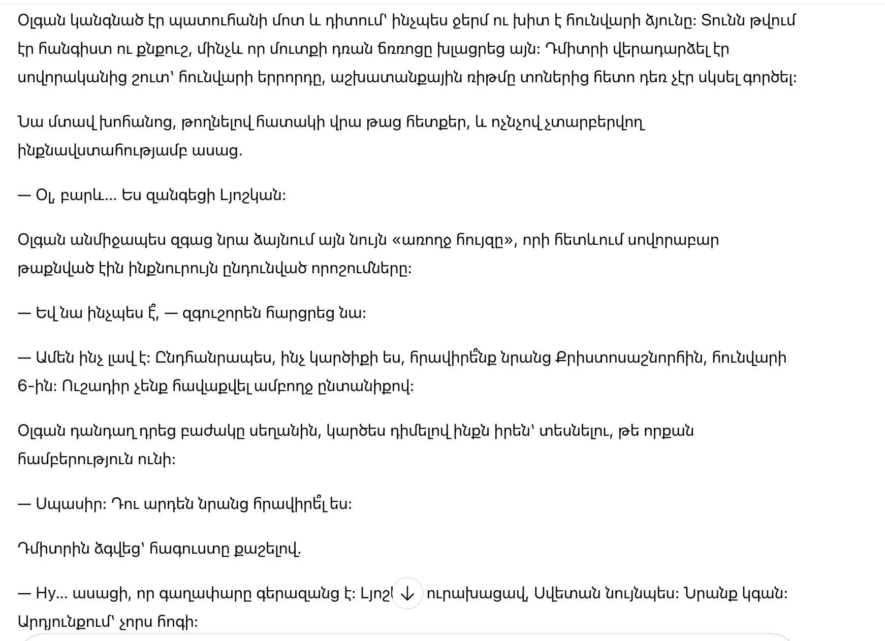 — Семейный, — кивнула Ольга. — И ты понимаешь, что в переводе на реальность это значит? Закупка, меню, готовка на шесть человек, подача, уборка, посуда… и ещё квартира после детских игр. Это всё — работа. И почему-то традиционно моя.