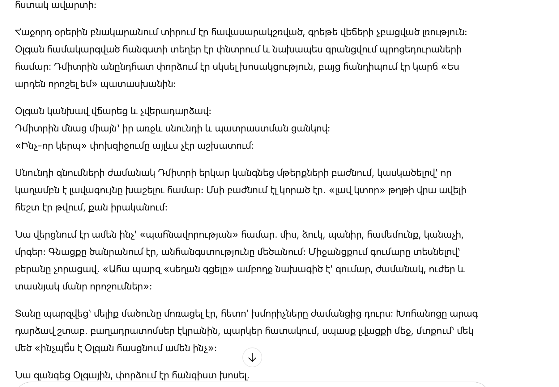 Следующие дни в квартире держалась ровная, почти вежливая тишина. Ольга методично выбирала место для отдыха и записывалась на процедуры. Дмитрий то и дело пытался начать разговор, но натыкался на короткое «я уже всё решила».