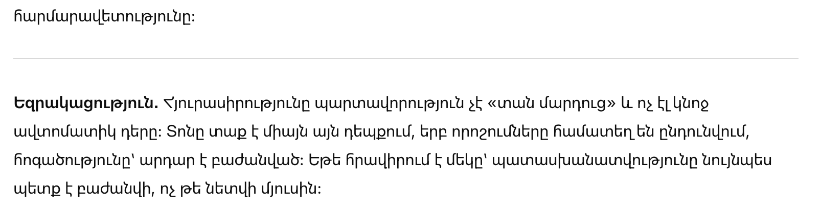 — Странно — что ты до сих пор не понял, сколько труда стоит каждый «просто посидим». Жена — не обслуживающий персонал. Вы партнёры. Если решаешь один, то и ответственность несёшь один.