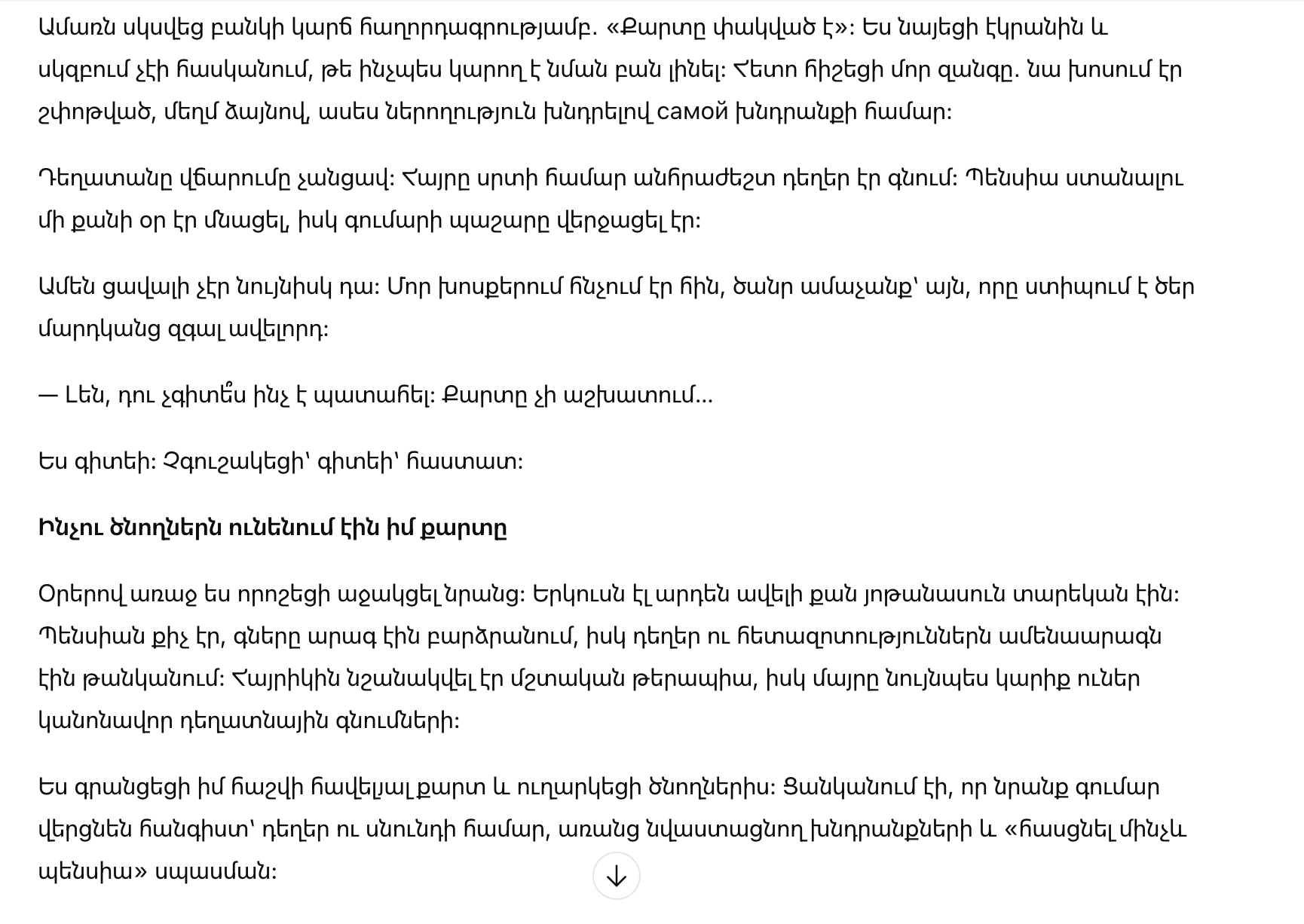 Я быстро восстановила доступ к карте и попросила у мамы прощения, сославшись на «технический сбой». Она, кажется, всё поняла по интонации — но не стала допрашивать. Это было даже тяжелее: когда тебя не обвиняют, а просто молча терпят.