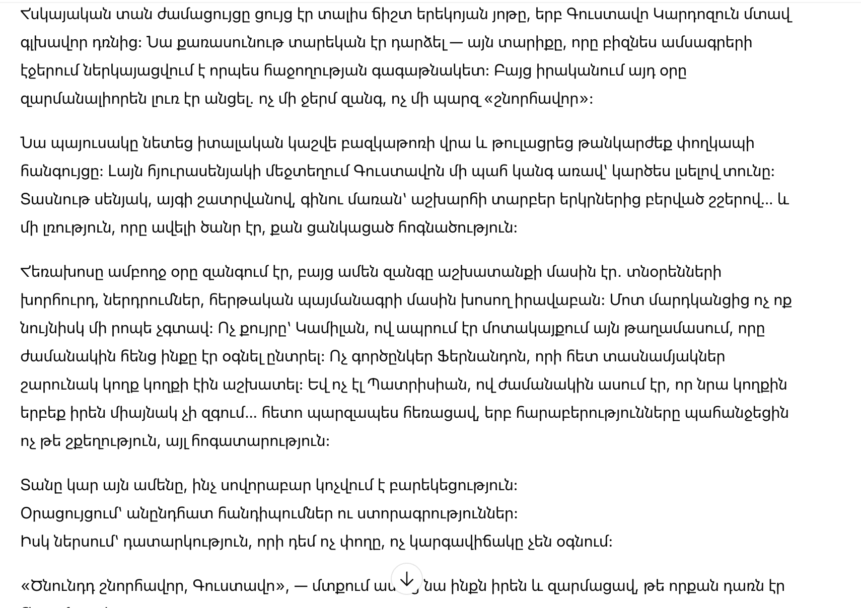 Густаво не сразу нашёл слова. В его мире поздравления обычно выражались дорогими жестами, но здесь всё было иначе: скромно, по-домашнему, тепло. И от этого — по-настоящему.