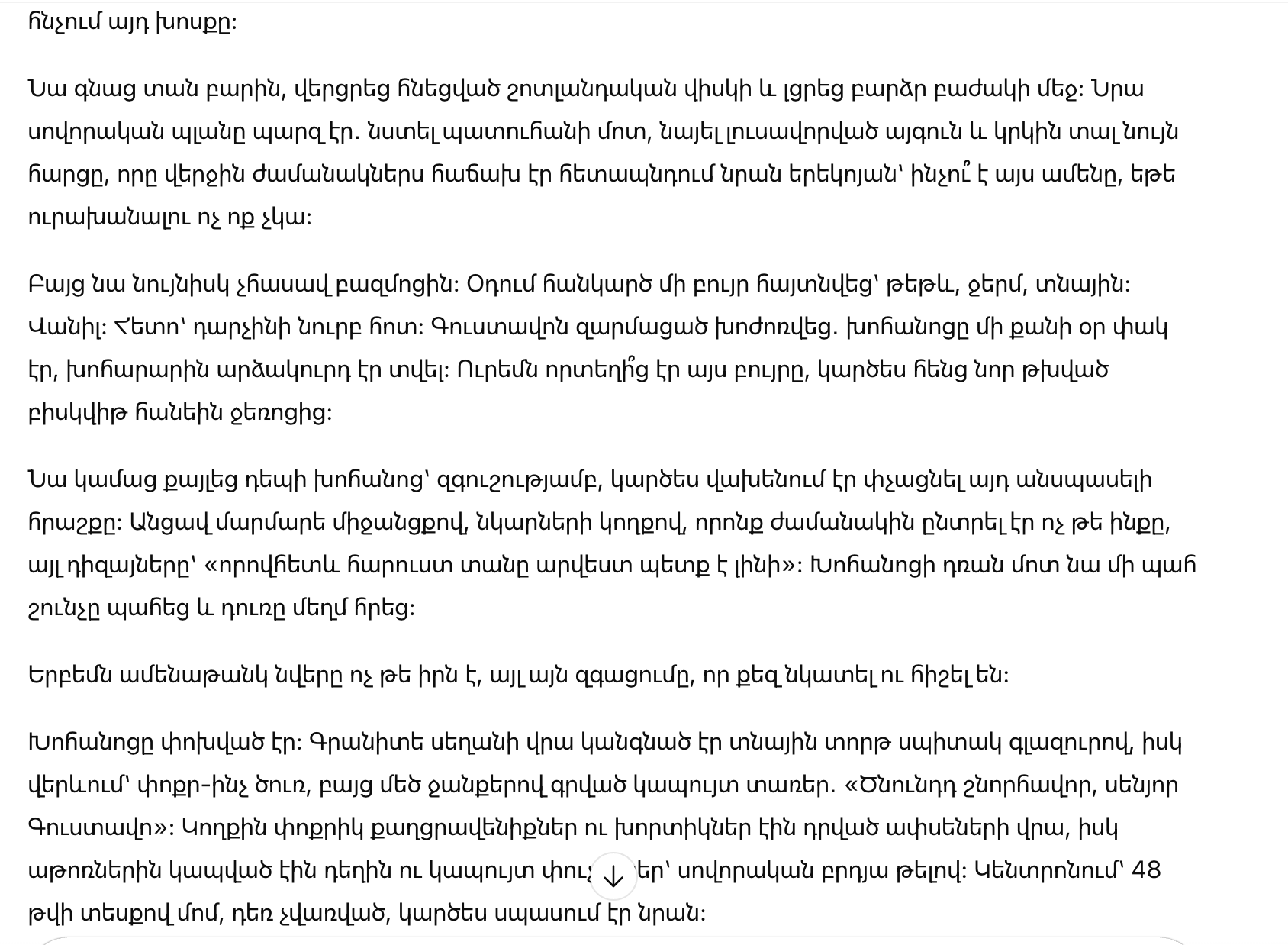 Но до дивана он не дошёл. В воздухе появился аромат — лёгкий, тёплый, домашний. Ваниль. Затем — нотка корицы. Густаво нахмурился: кухня уже несколько дней «отдыхала», повару он дал отпуск. Откуда тогда этот запах, будто кто-то только что вынул из духовки свежий бисквит?