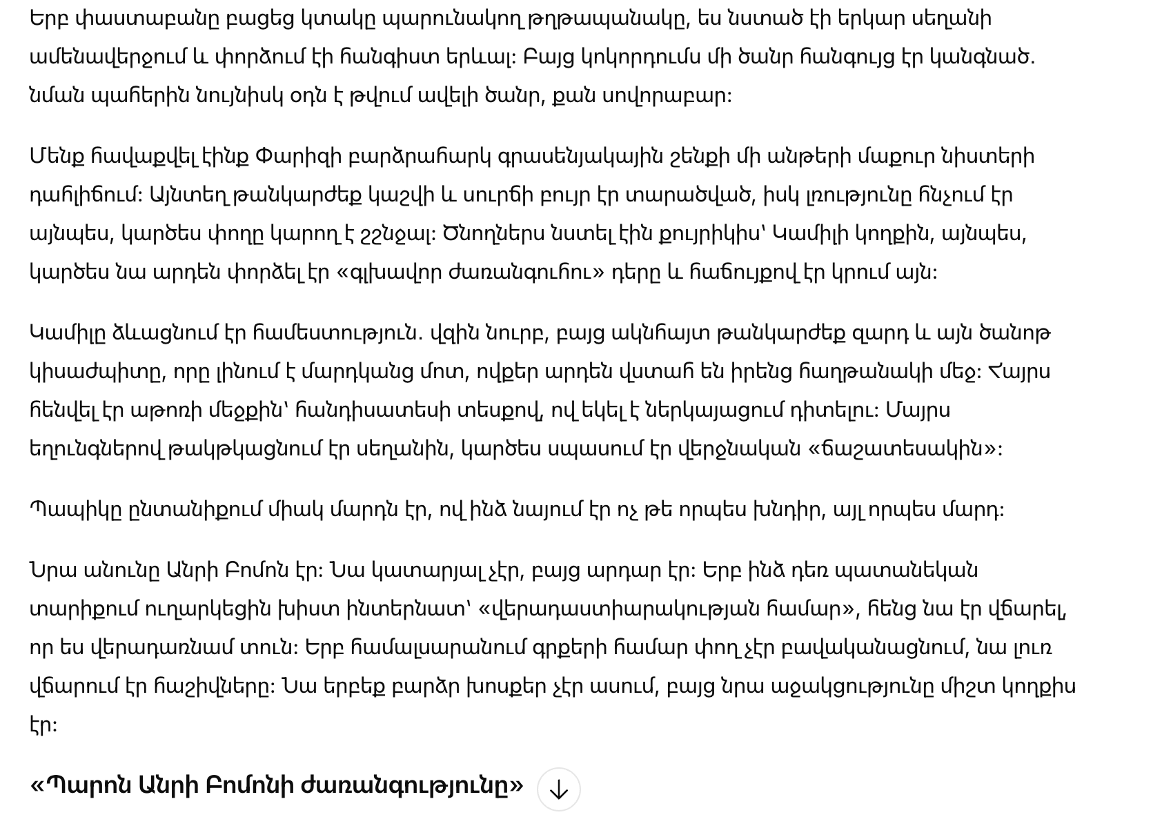 Отец повернул голову к Камиль, как будто впервые увидел ее по-настоящему.