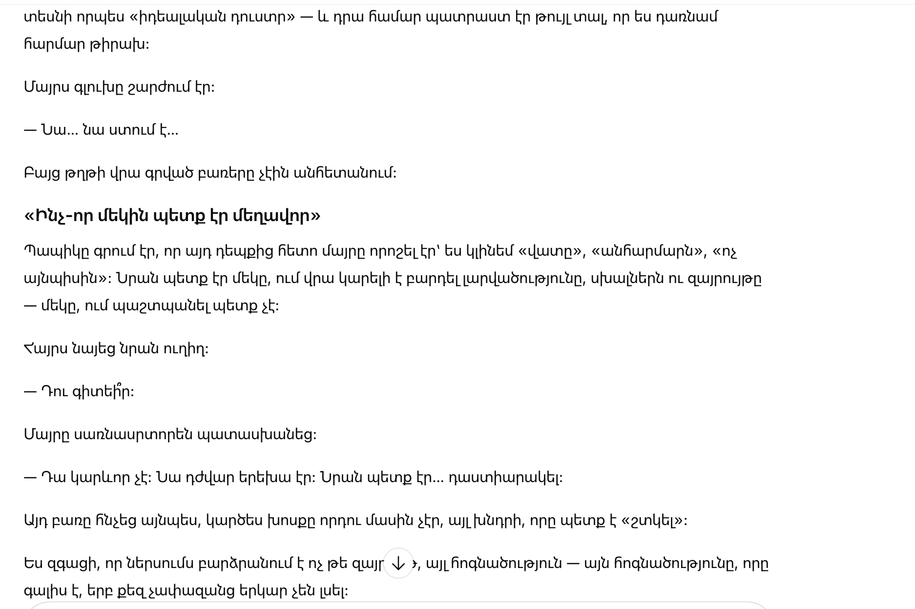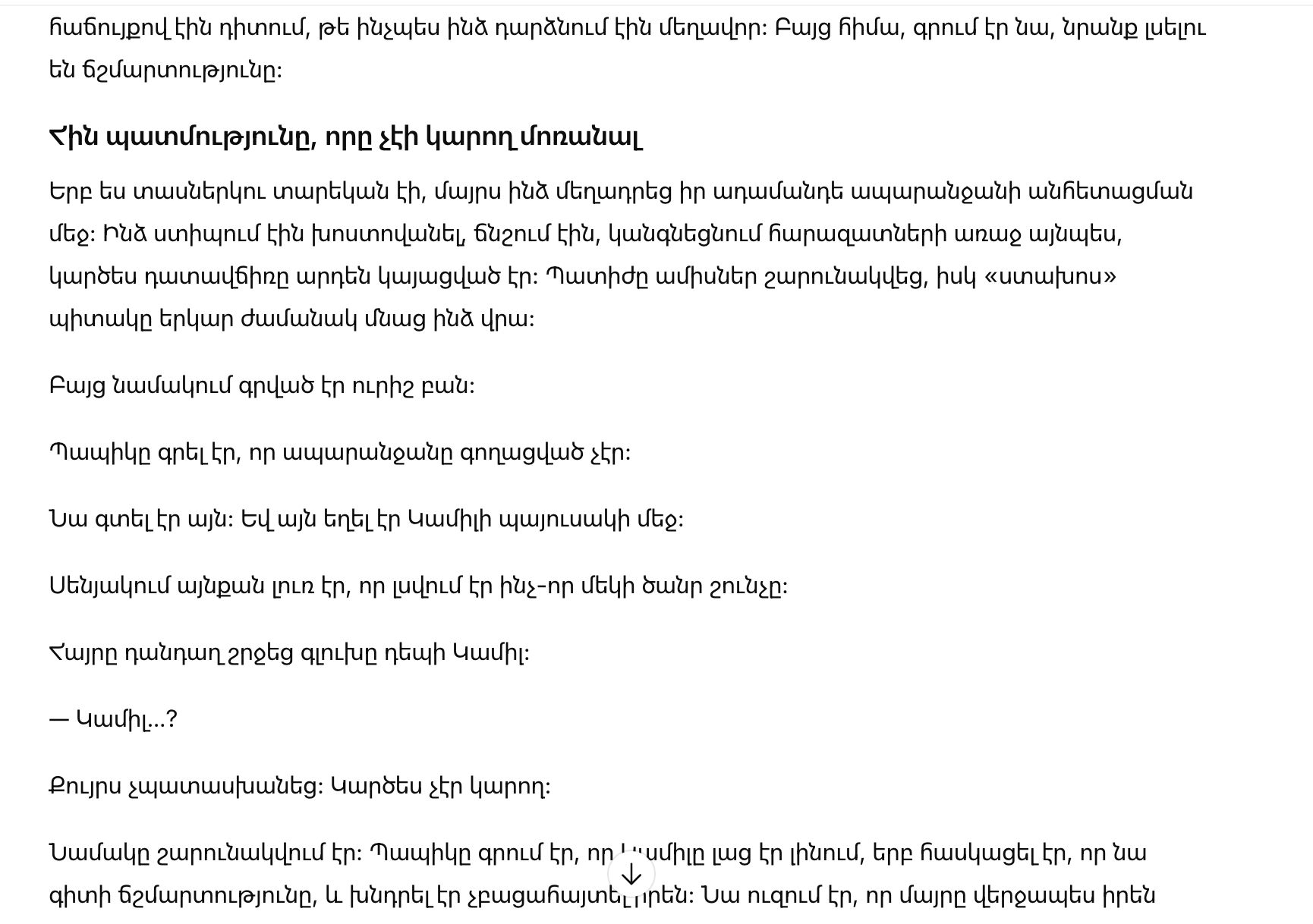 На лице мамы что-то дрогнуло. Улыбка исчезла. Камиль перестала смеяться — будто звук застрял у нее в горле.