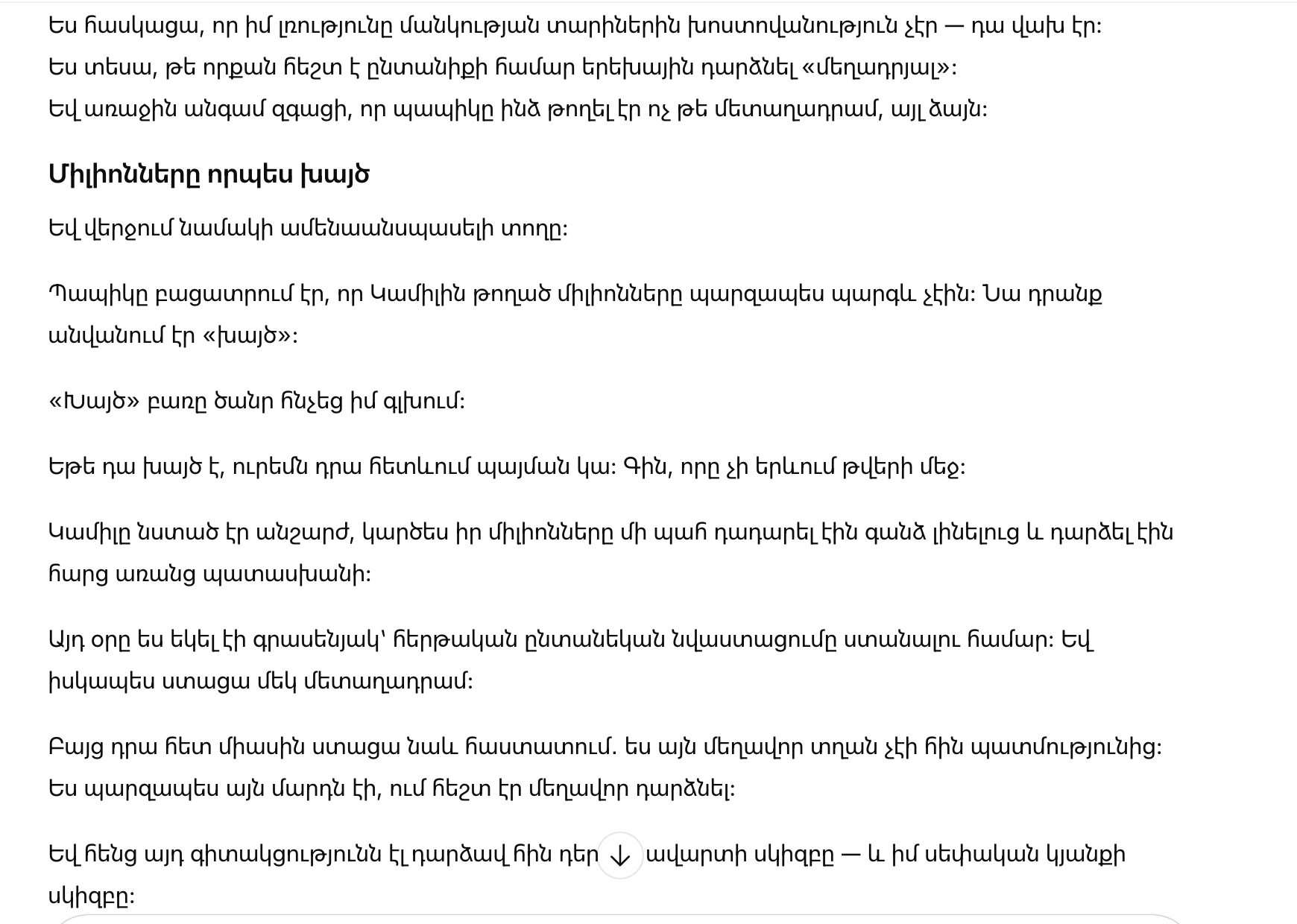 Если это приманка, значит, за ней скрывается условие. Значит, впереди — цена, которую нельзя увидеть в цифрах. Камиль сидела неподвижно, будто ее миллионы на мгновение стали не сокровищем, а вопросом без ответа.