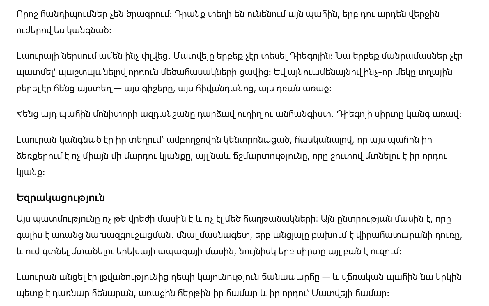 У Лауры внутри всё рухнуло: Матвей никогда не видел Диего. Она не рассказывала деталей, берегла ребенка от взрослой боли. И всё же кто-то привел сына прямо сюда — в эту ночь, в эту больницу, к этой двери.