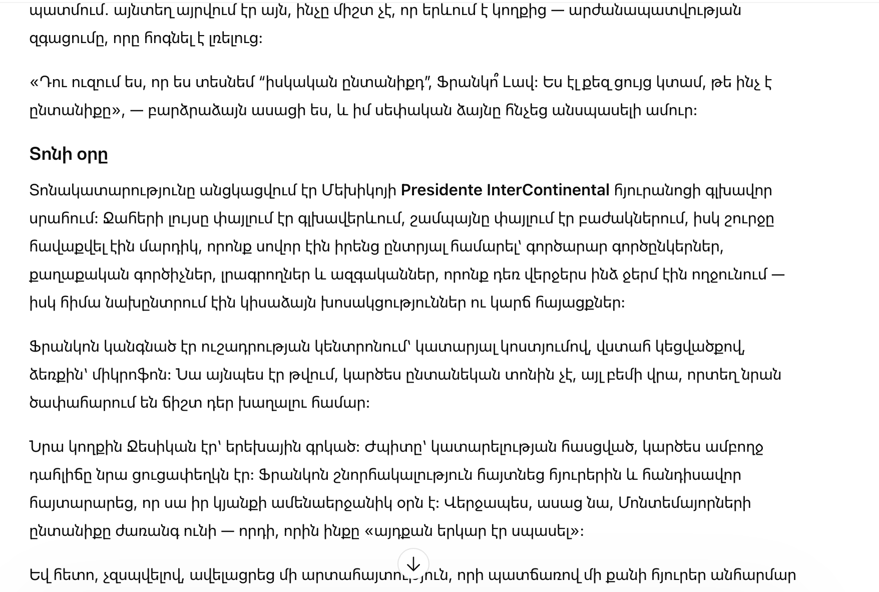 Торжество проходило в главном зале отеля Presidente InterContinental в Мехико. Свет люстр искрился над головами, в бокалах переливалось шампанское, а вокруг собирались те, кто привык считать себя избранными: деловые партнёры, политики, представители прессы и родственники, которые ещё недавно здоровались со мной тепло — а теперь предпочитали полушёпот и короткие взгляды.