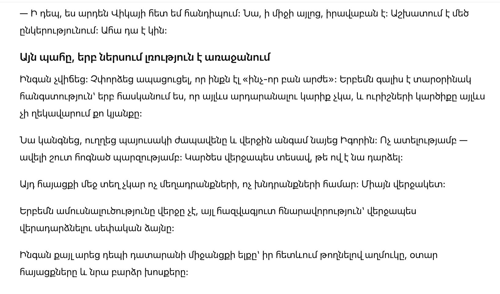 Инга не стала спорить. Не стала доказывать, что она «тоже чего-то стоит». В какой-то момент приходит странное спокойствие: когда понимаешь, что оправдания уже не нужны, а чужое мнение больше не управляет твоей жизнью.