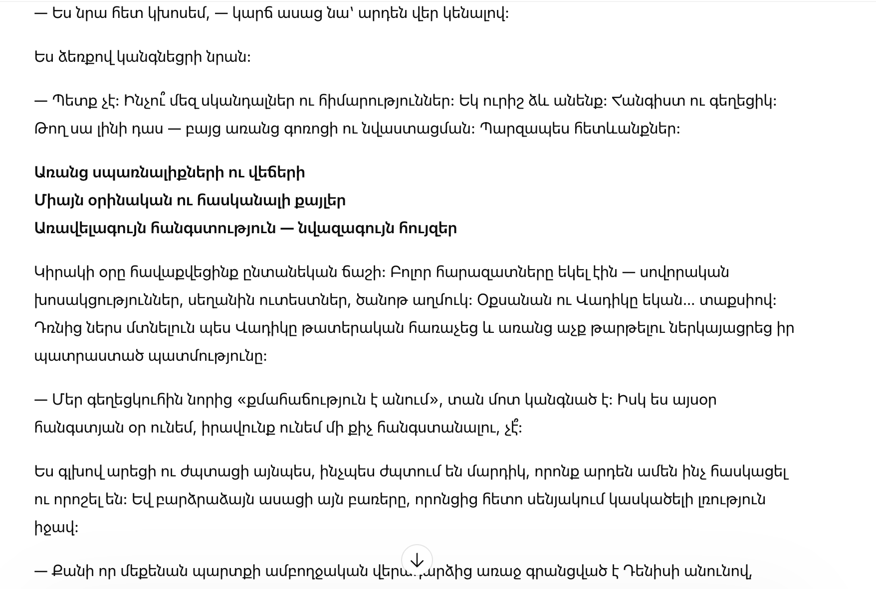 — Не надо. Зачем нам скандалы и глупости? Давай сделаем иначе. Спокойно и красиво. Пусть это будет урок — но без крика и без унижений. Просто последствия.