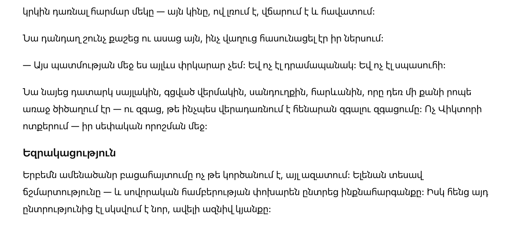 Елена не спорила и не устраивала сцен. Она просто поняла, что «начать заново» означает снова стать удобной — той, кто молчит, платит и верит.