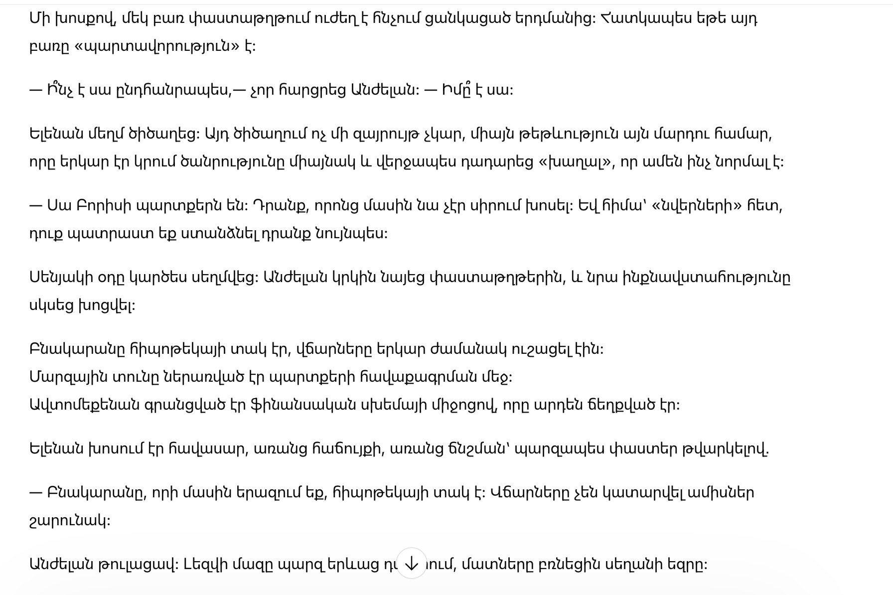 Воздух в кабинете будто стал плотнее. Анжела снова впилась взглядом в бумаги, и ее уверенность начала сдавать.