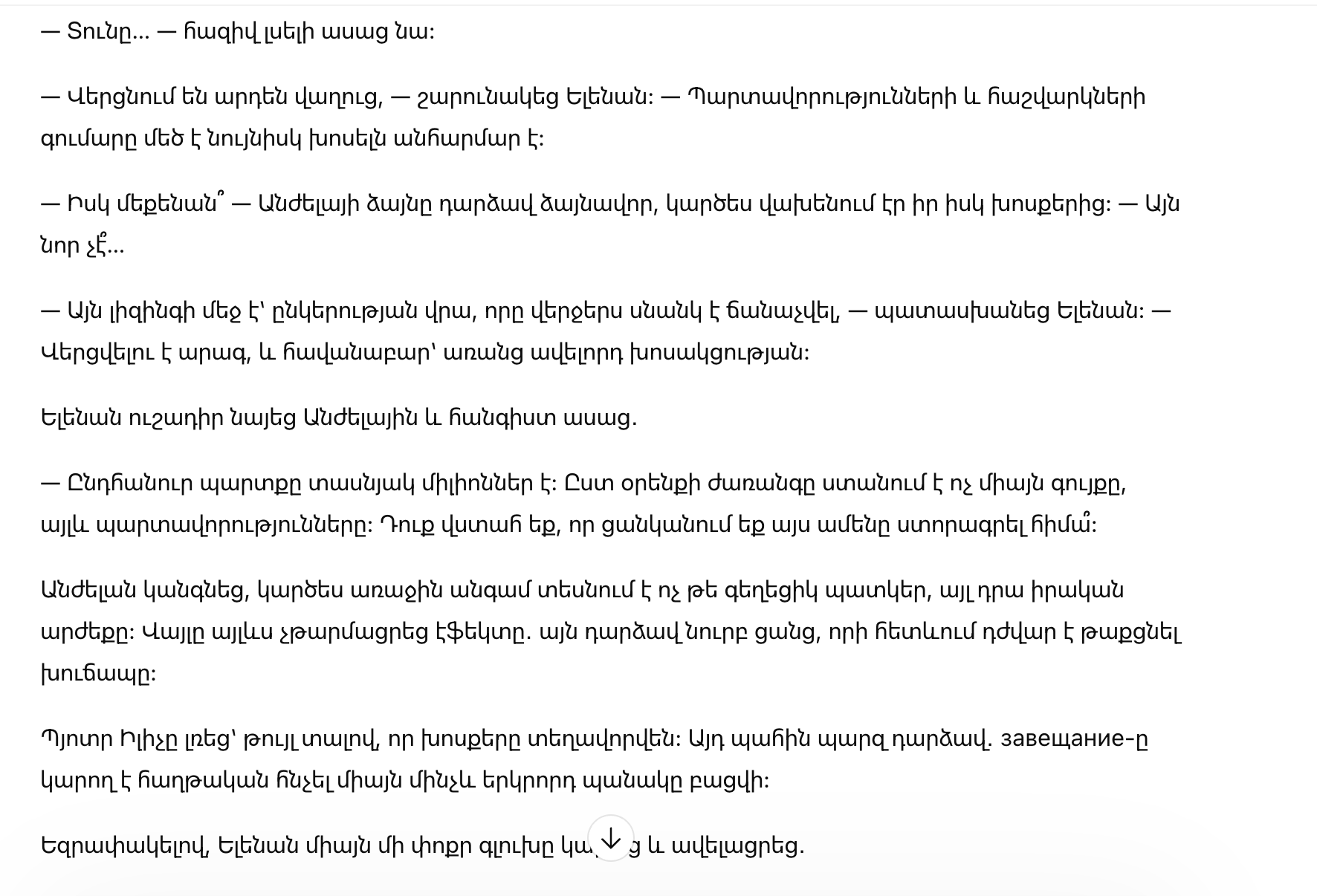 — Общая задолженность — десятки миллионов. И по закону наследник получает не только имущество, но и обязательства. Вы уверены, что хотите подписать всё это прямо сейчас?