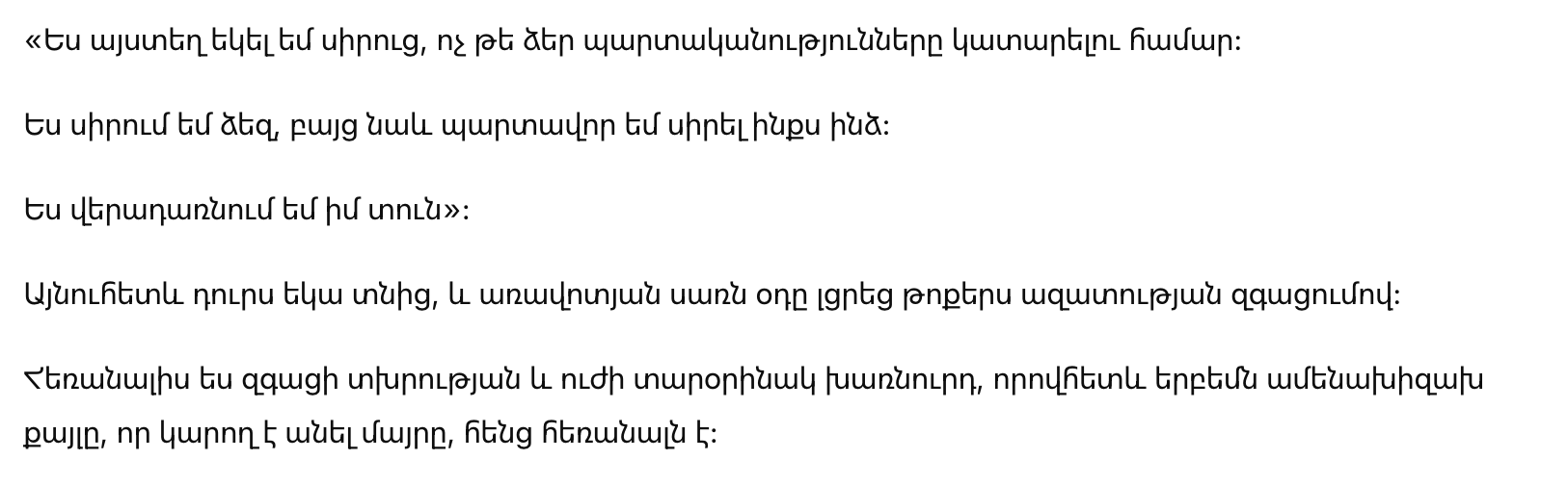«Я пришла сюда из любви, а не для того, чтобы выполнять ваши обязанности.