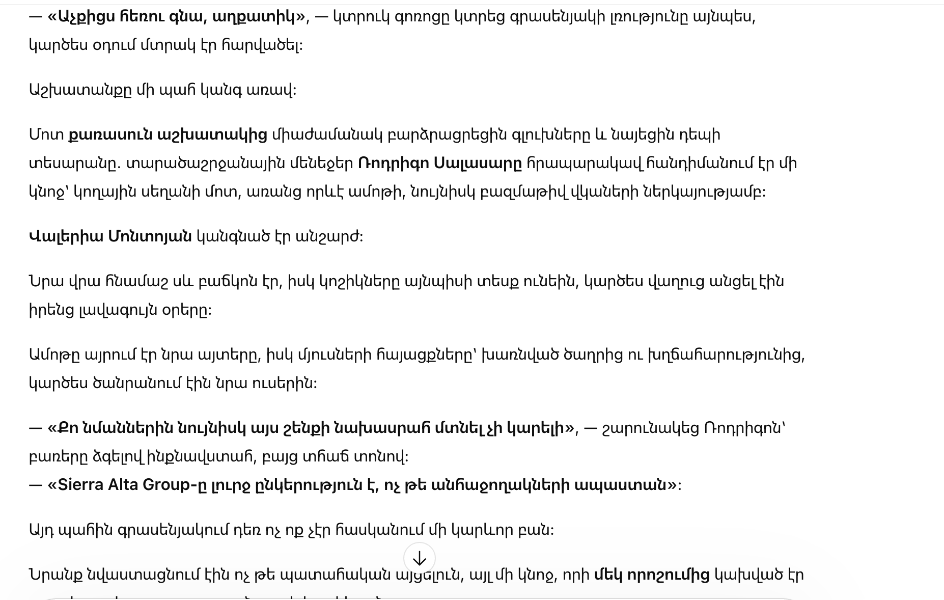 — «Таким, как ты, вообще нельзя заходить даже в вестибюль этого здания», — продолжил Родриго, растягивая слова с неприятной уверенностью. — «Sierra Alta Group — серьёзная компания, а не приют для неудачников».
