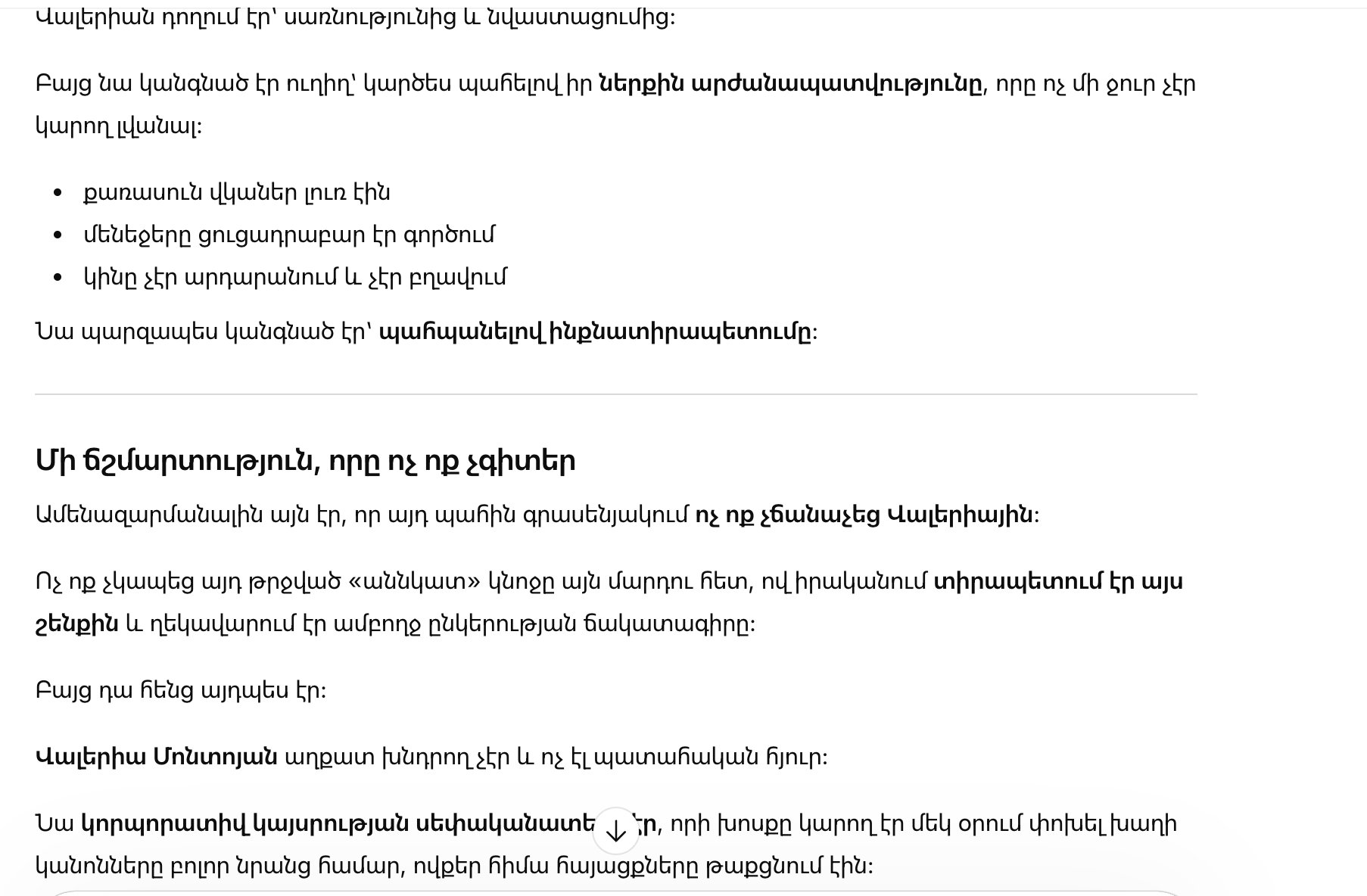 Для персонала она стала почти мифом — легендой компании, чьё присутствие ощущалось, но не подтверждалось ничьими глазами.