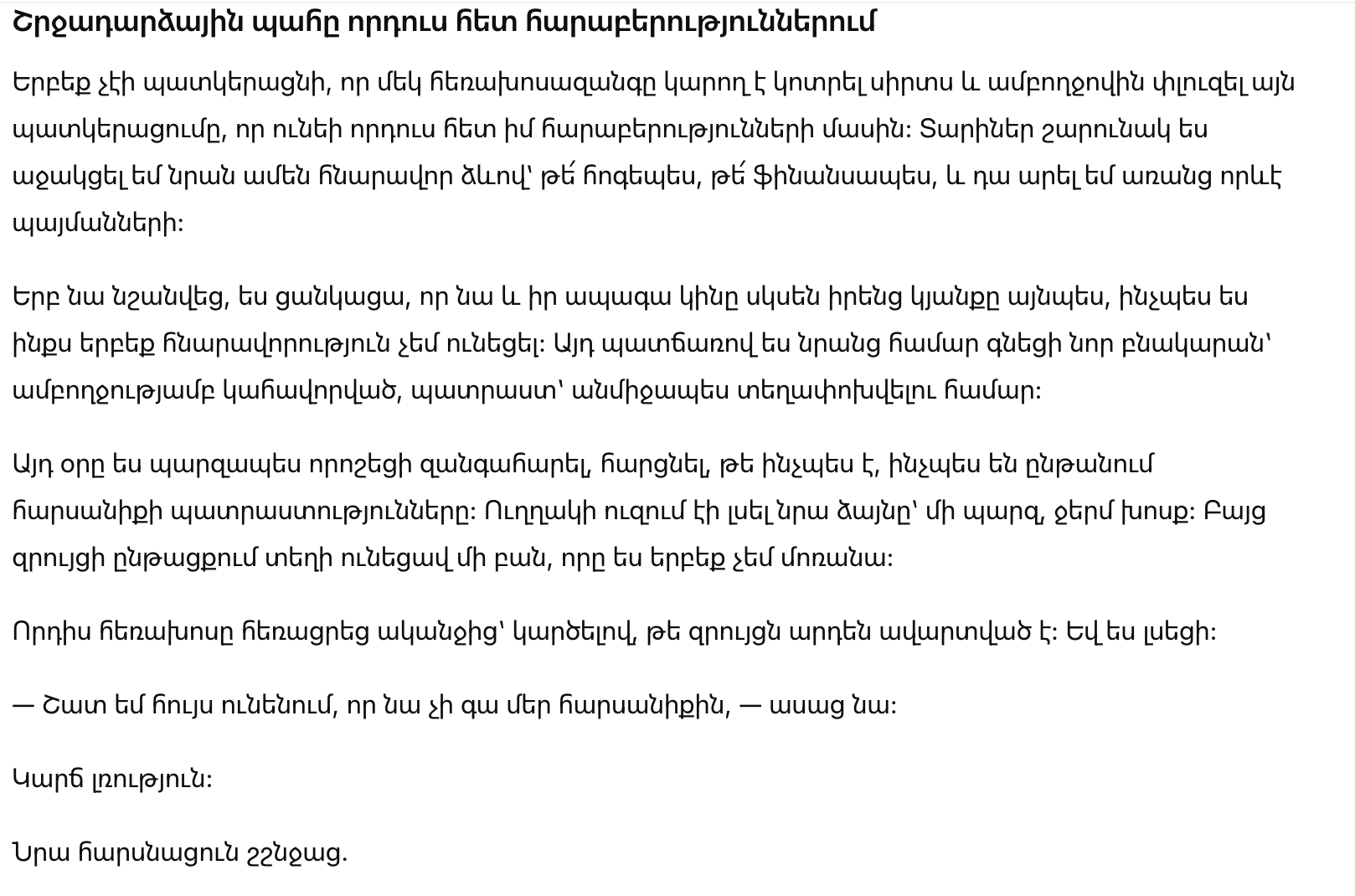 Я никогда не предполагала, что один телефонный звонок сломает мое сердце и разрушит все представления о моих отношениях с сыном. Я долго поддерживала его во всем, что могла, как эмоционально, так и финансово, и делала это безоговорочно.