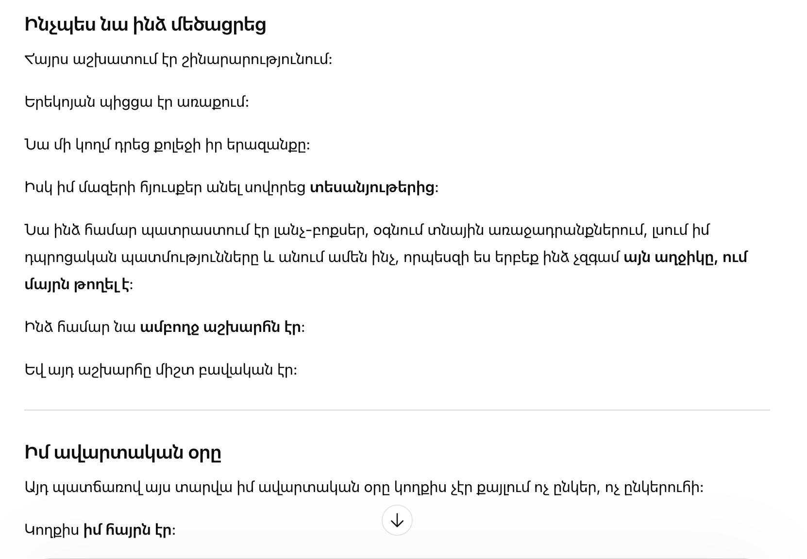 Поэтому в день моего выпускного в этом году рядом со мной шёл не парень и не подружки. Рядом был он — мой папа. Он проводил меня через футбольное поле, где проходила церемония, стараясь держаться уверенно, хотя глаза у него уже блестели.