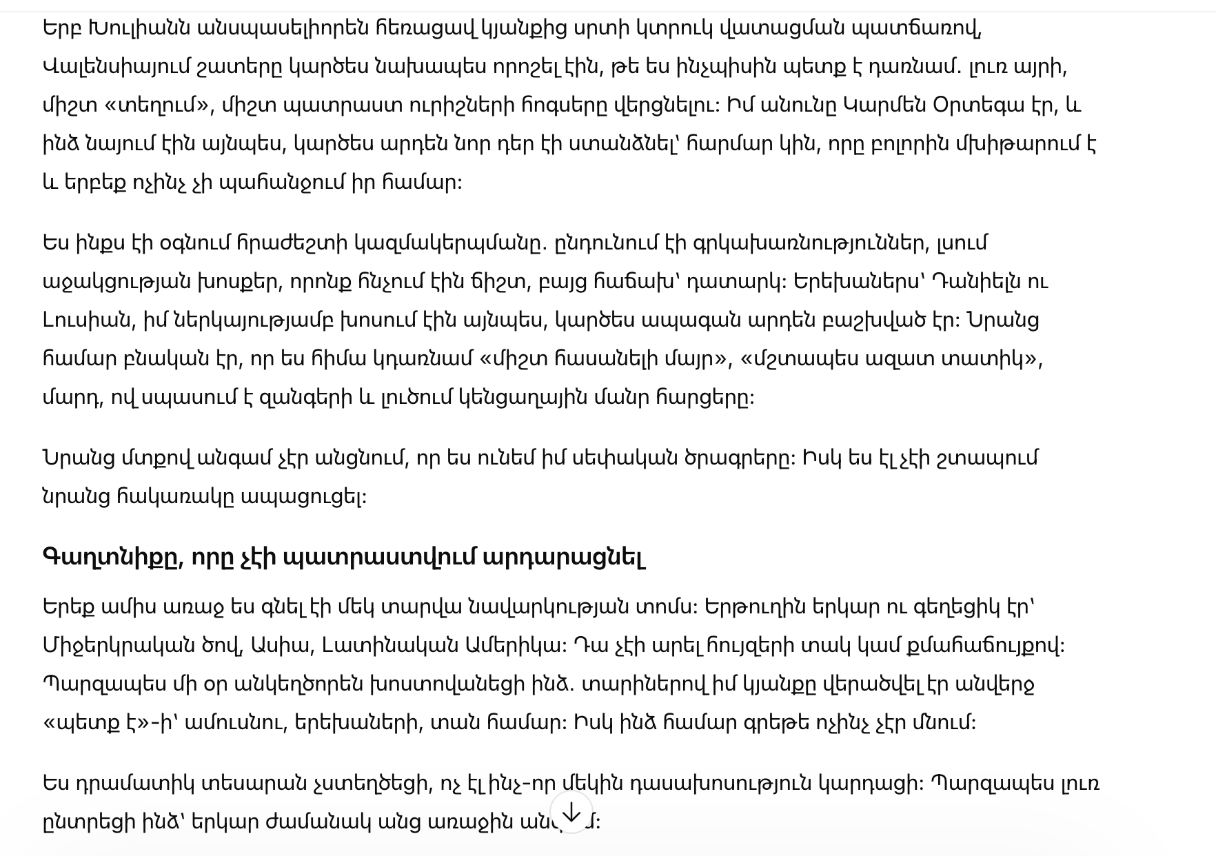 • Я хотела снова чувствовать, что живу, а не обслуживаю расписание других.