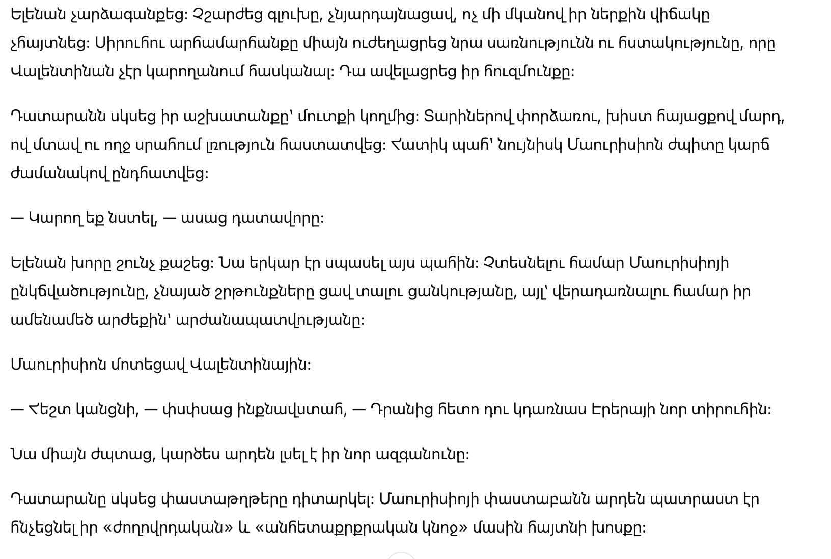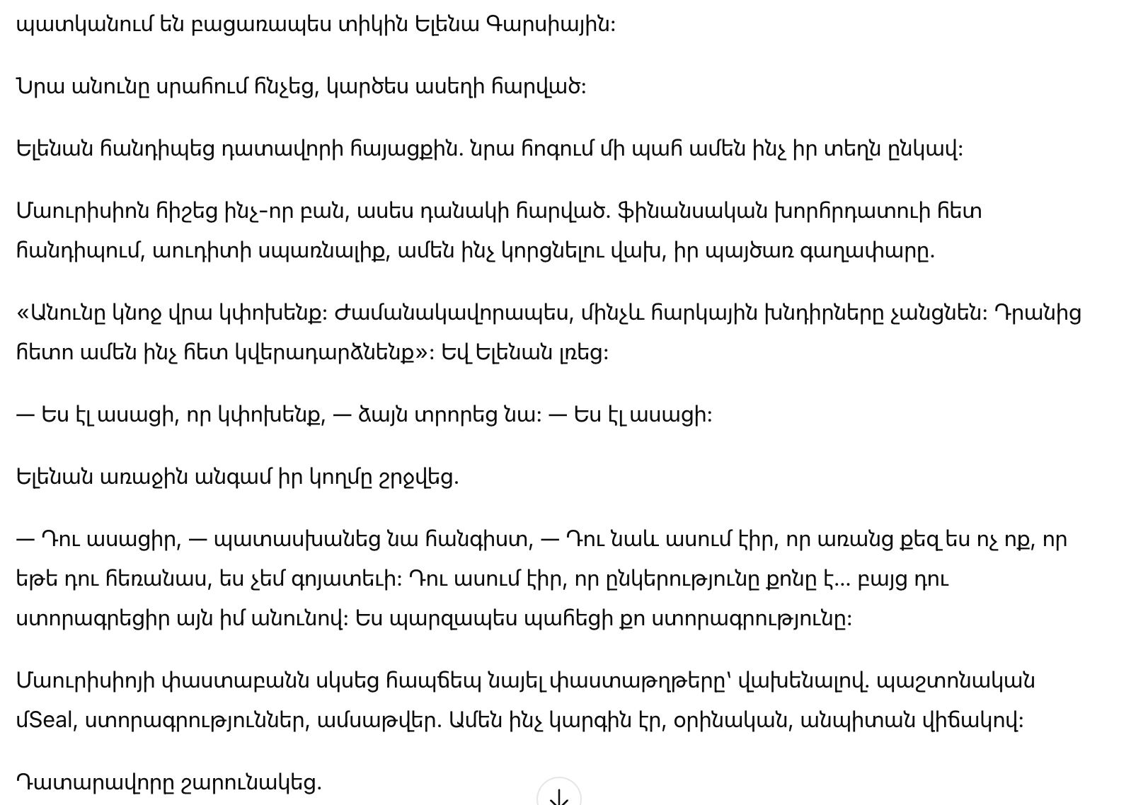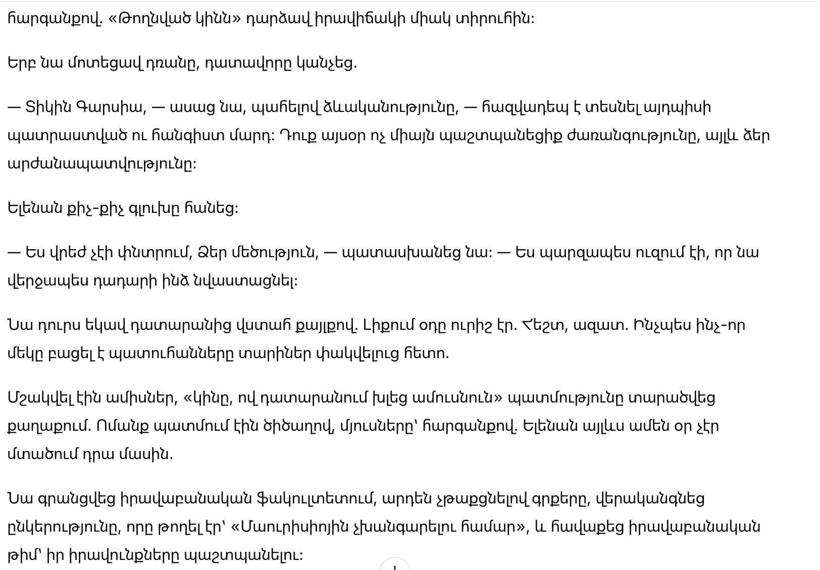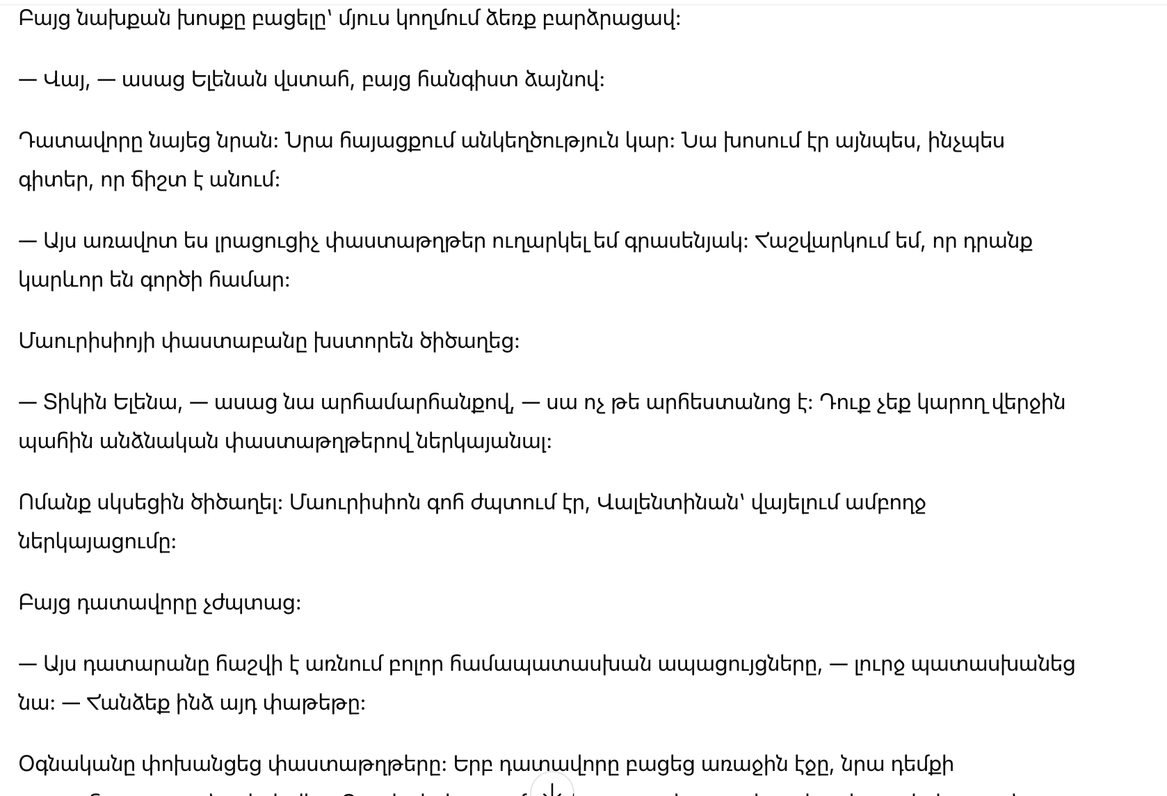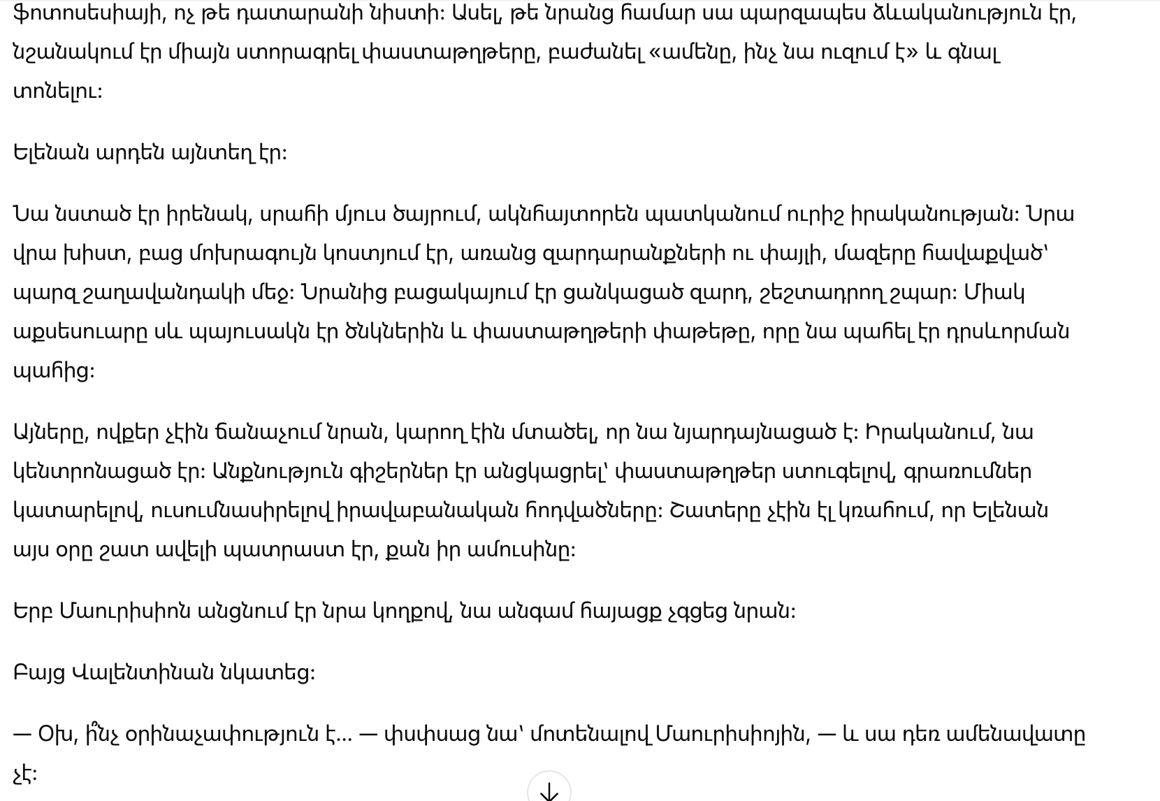 Те, кто не знал её, могли бы подумать, что она нервничает. На самом деле она была сосредоточена. Прошло по безсонным ночам, проверяя бумаги, делая заметки, изучая юридические статьи. Многие не подозревали, что Елена подошла к этому дню с гораздо большей готовностью, чем её муж.