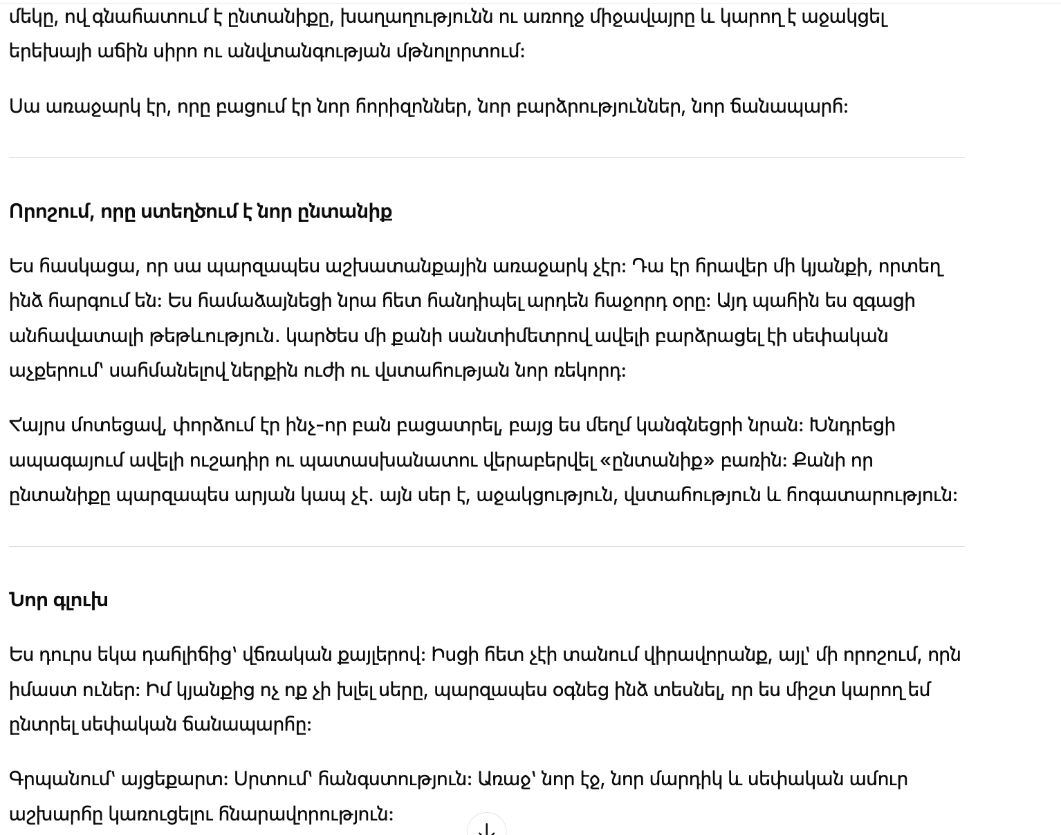 Я поняла, что передо мной не просто предложение о работе. Это было приглашение к жизни, в которой меня уважают. Я согласилась встретиться с ним уже на следующий день. В этот момент я почувствовала невероятную лёгкость — словно выросла на несколько сантиметров в собственных глазах, побила внутренний рекорд уверенности и силы духа.