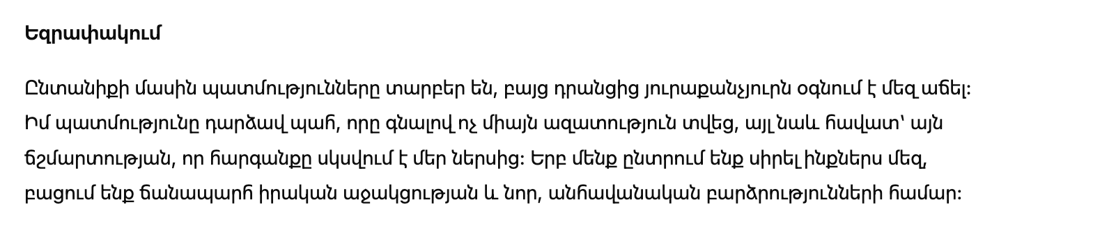 Истории о семье бывают разными, но каждая из них помогает нам расти. Моя история стала моментом, который подарил мне не только свободу, но и веру в то, что уважение начинается внутри нас. Когда мы выбираем любовь к себе, мы открываем пространство для настоящей поддержки и новых, удивительных высот.