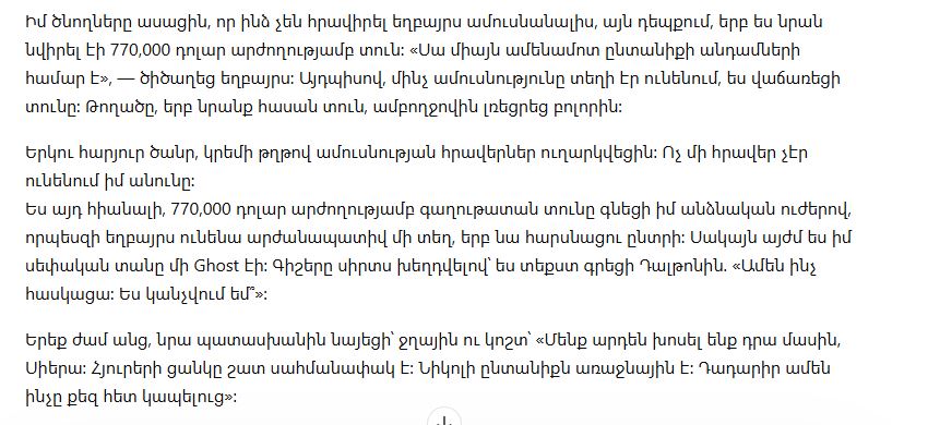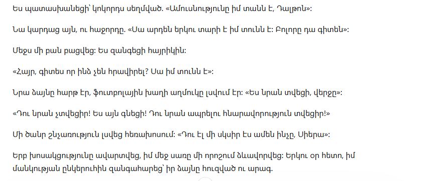 Прочитано. Пауза. Затем: «Это мой дом уже два года. Все так считают».