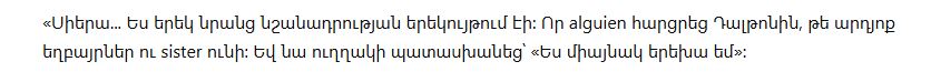 «Он посмотрел прямо на человека и сказал, что он… единственный ребёнок в семье».